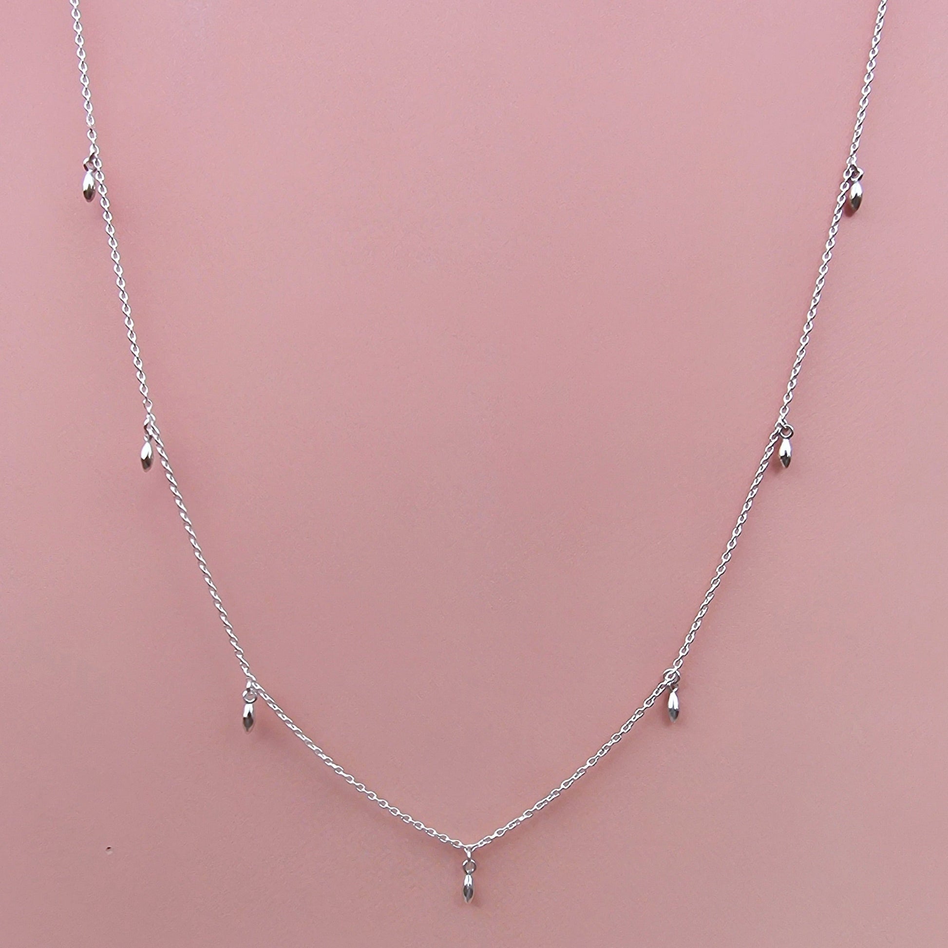 Transform your style with our Silver Rice Grain Charm Necklace. Inspired by Cambodia's paddy fields, this iconic design adds a touch of class at 17" in length. Perfect for layering and showcasing your unique look, elevate your wardrobe with this stylish piece today!