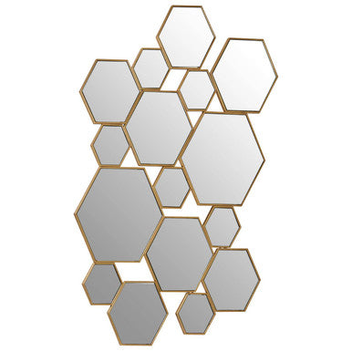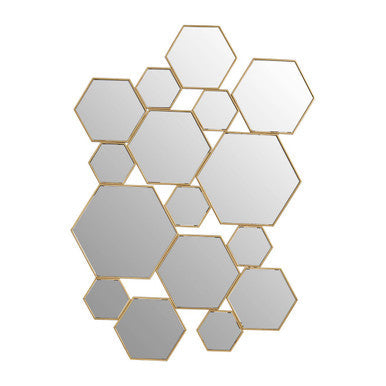 Bring artful geometry and luminous shine into your room with the Rio Gold Wall Mirror set. An arrangement of hexagonal frames in varying sizes creates a dynamic cluster that reflects light from multiple angles, adding energy and sparkle to your wall.