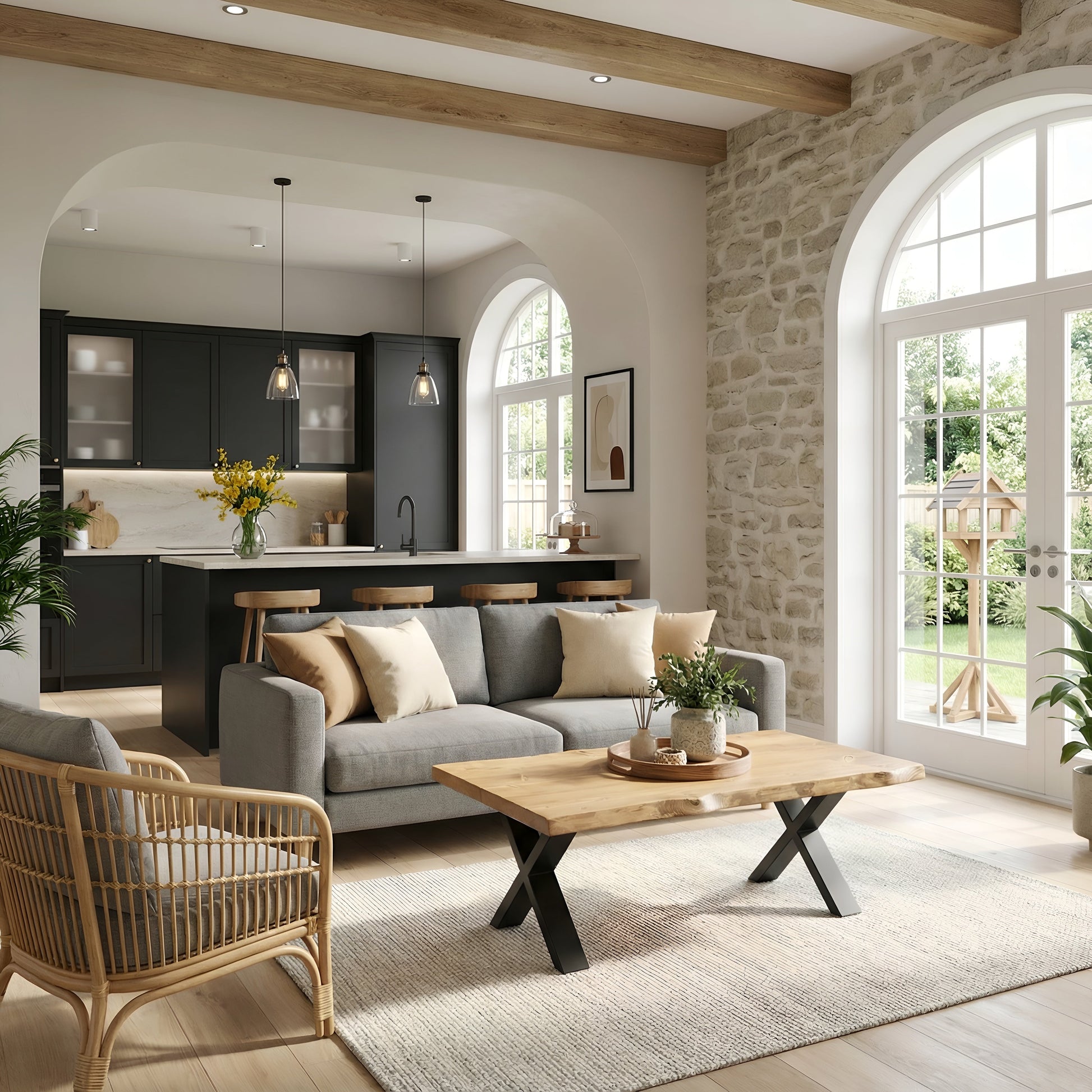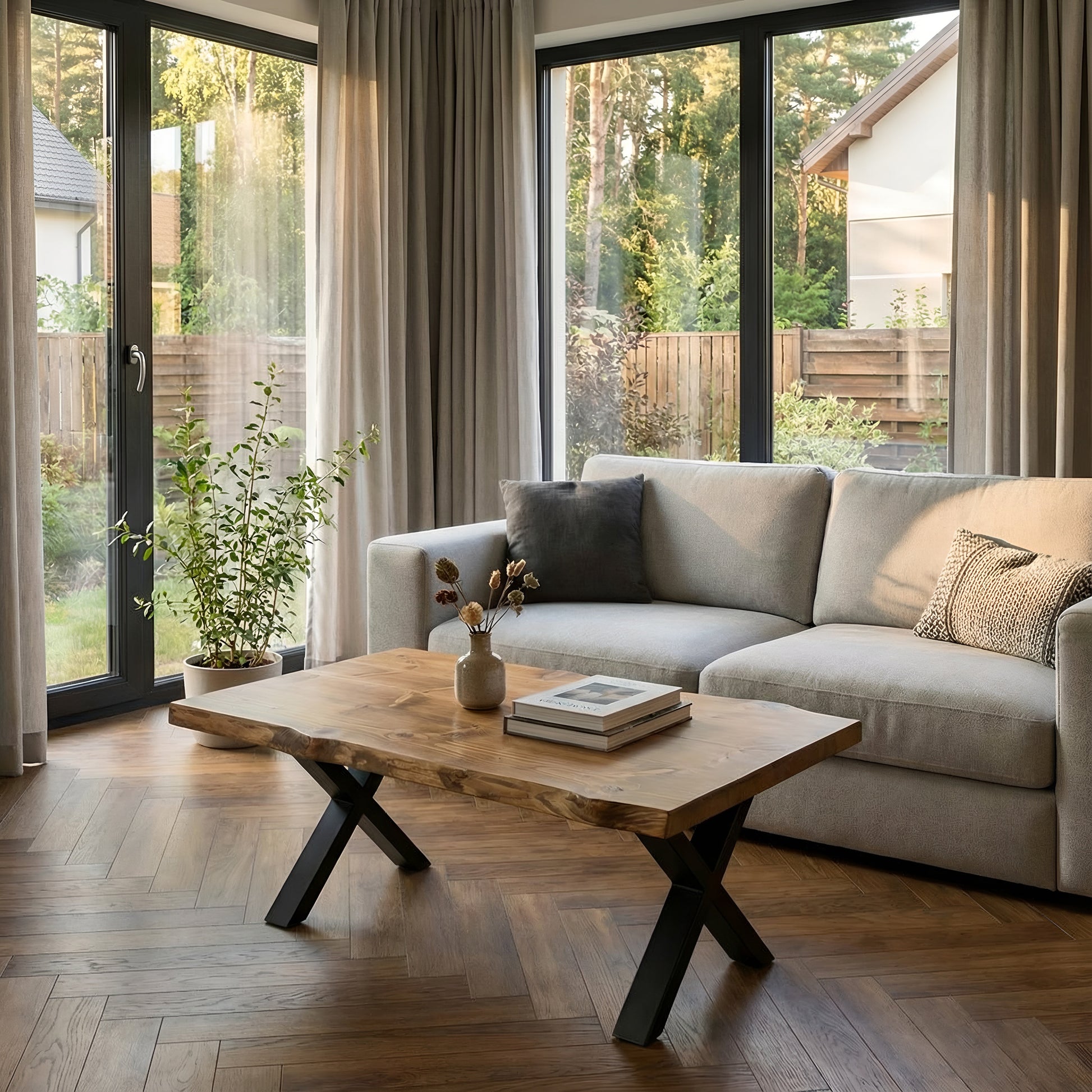 RITA Live / Waney Edge Coffee Table With Metal X Legs