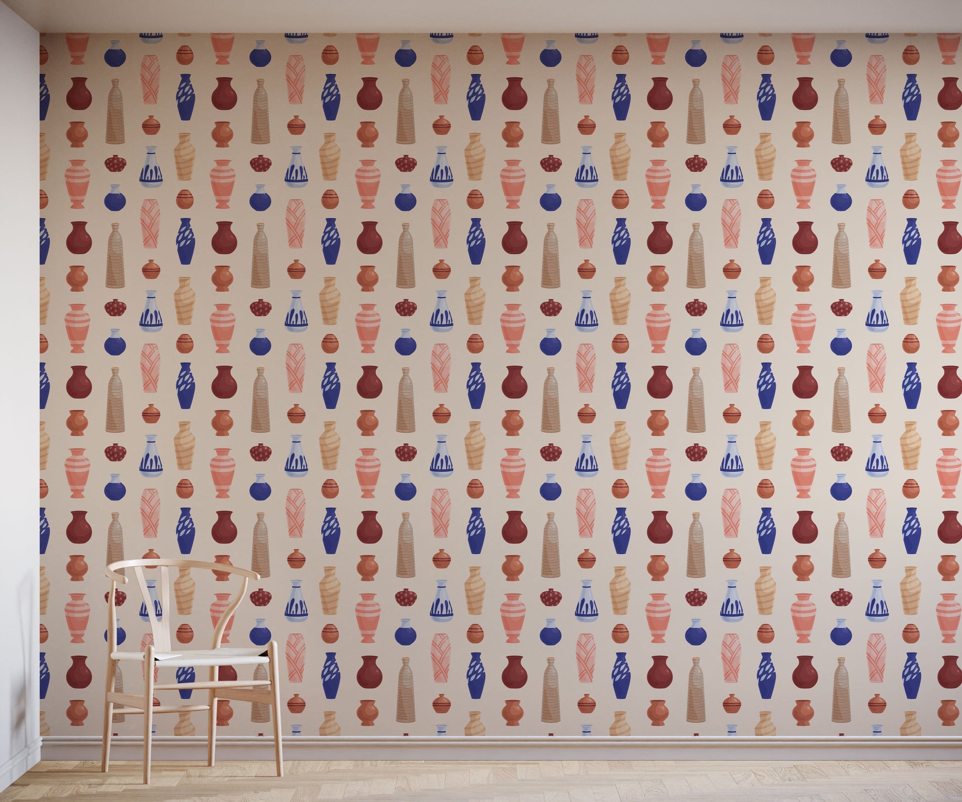 You don't have to be obsessed with pottery to enjoy the pleasing vase wallpaper. Certainly and unique choice, the design features beautifully illustrated vases and pots for a pleasing and well balanced wallpaper.