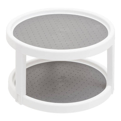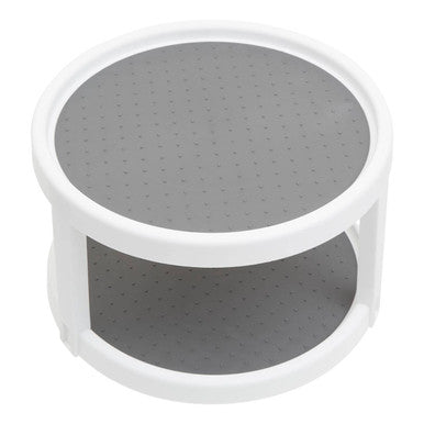 This two tier rack allows for flexible placement, while the revolving function, non-slip surface, and raised edges make it easy to access items and prevent them from falling. Its durable construction and easy to clean surface makes it an ideal choice for any kitchen.