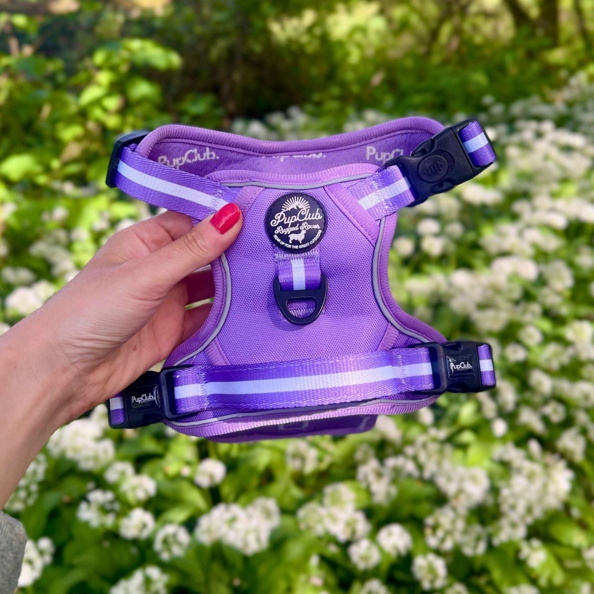 Meet our 'Lilac Blush' Rugged Rover no pull Dog Harness! A stunning purple lilac tone, with subtle white contrasting detail. Perfect for all year round wear for both boy and girl dogs.