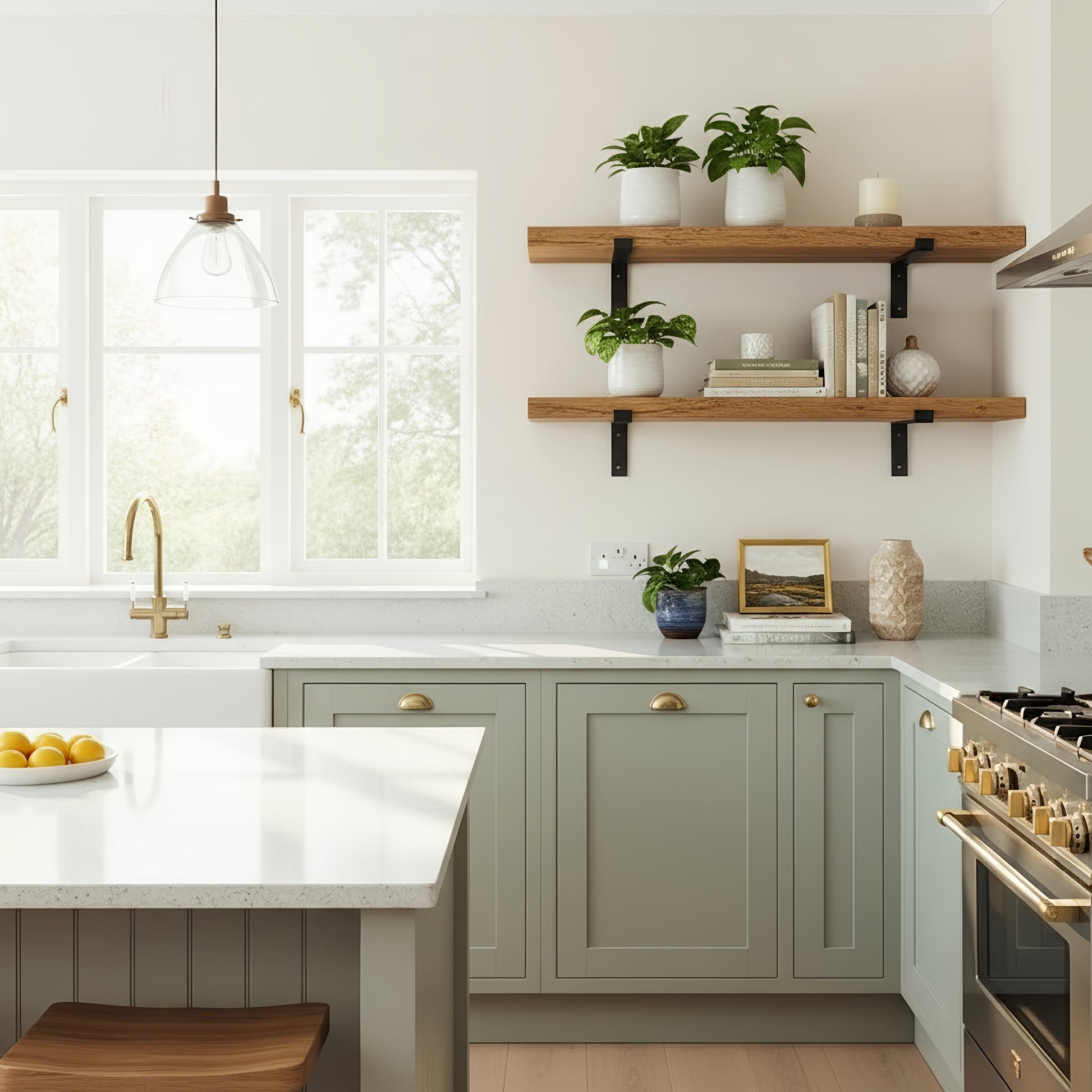 Handcrafted Solid Wood Shelf Rustic Industrial with Steel Brackets