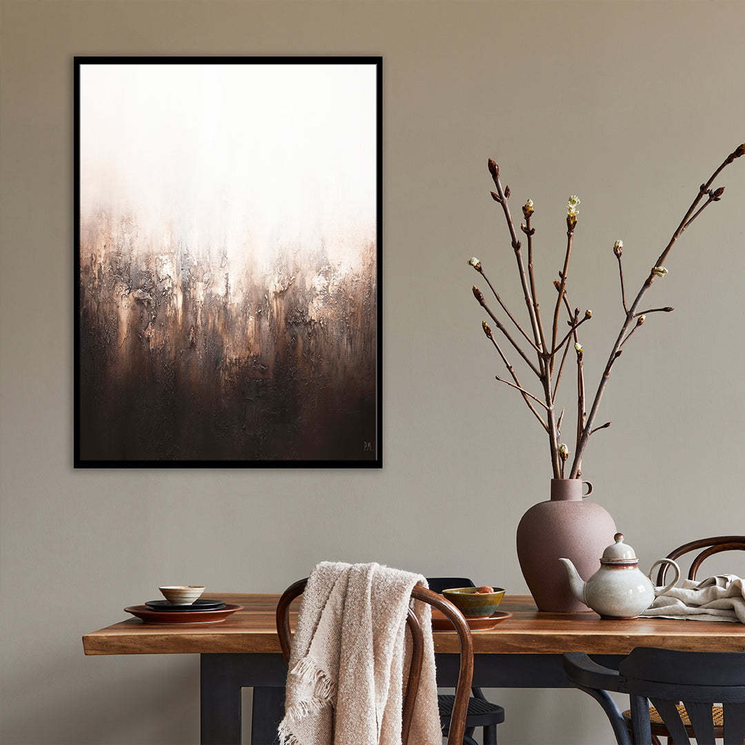 Paige Marie has created an intriguing, abstract piece with ‘Rustica’. The dark browns blend gradually in to the beiges and off-whites, creating an inspiring ombré effect.