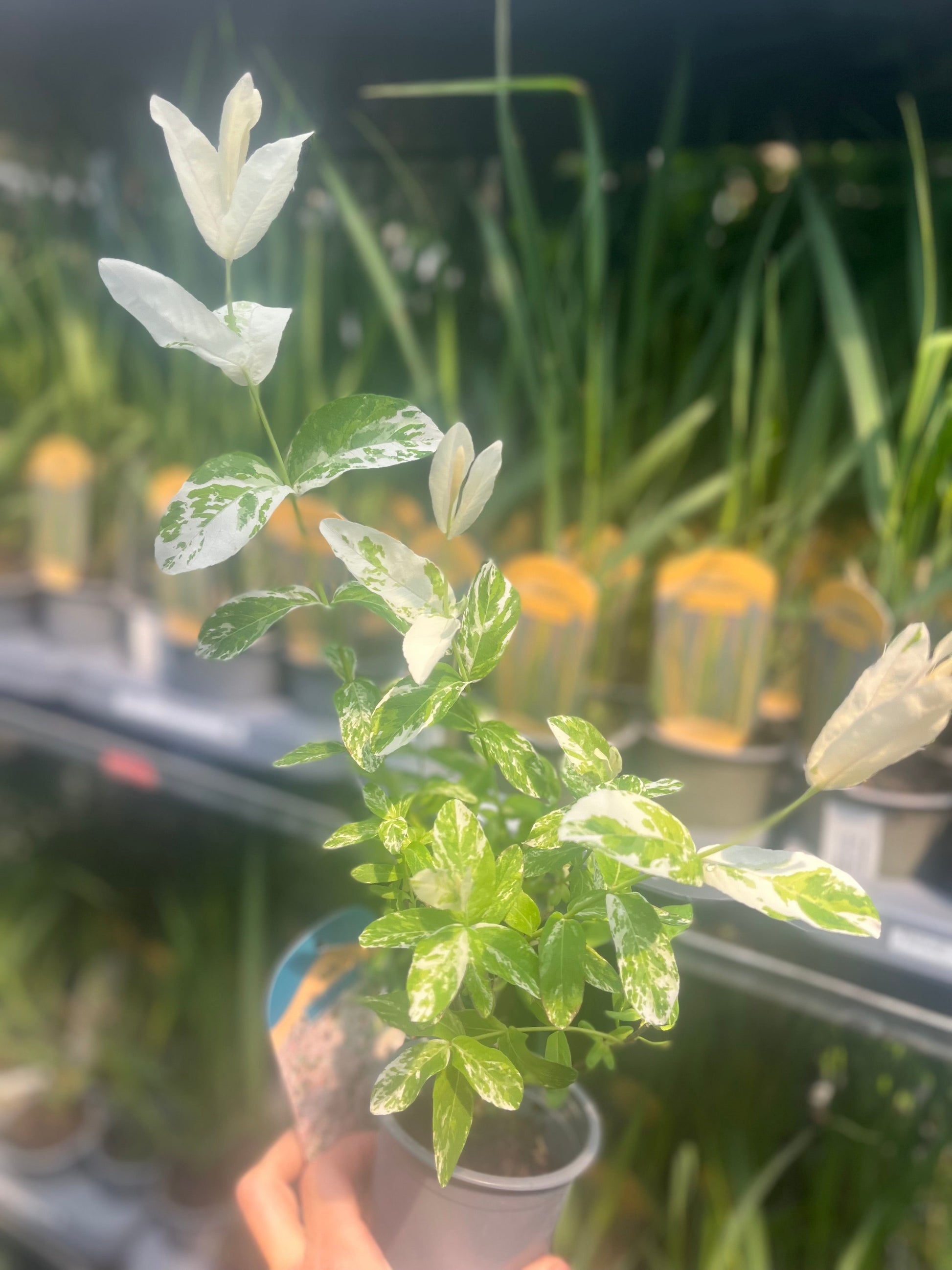 The leaves emerge pink in the spring, maturing to variegated shades of pink, creamy white and green, then turning predominantly green as the summer progresses.