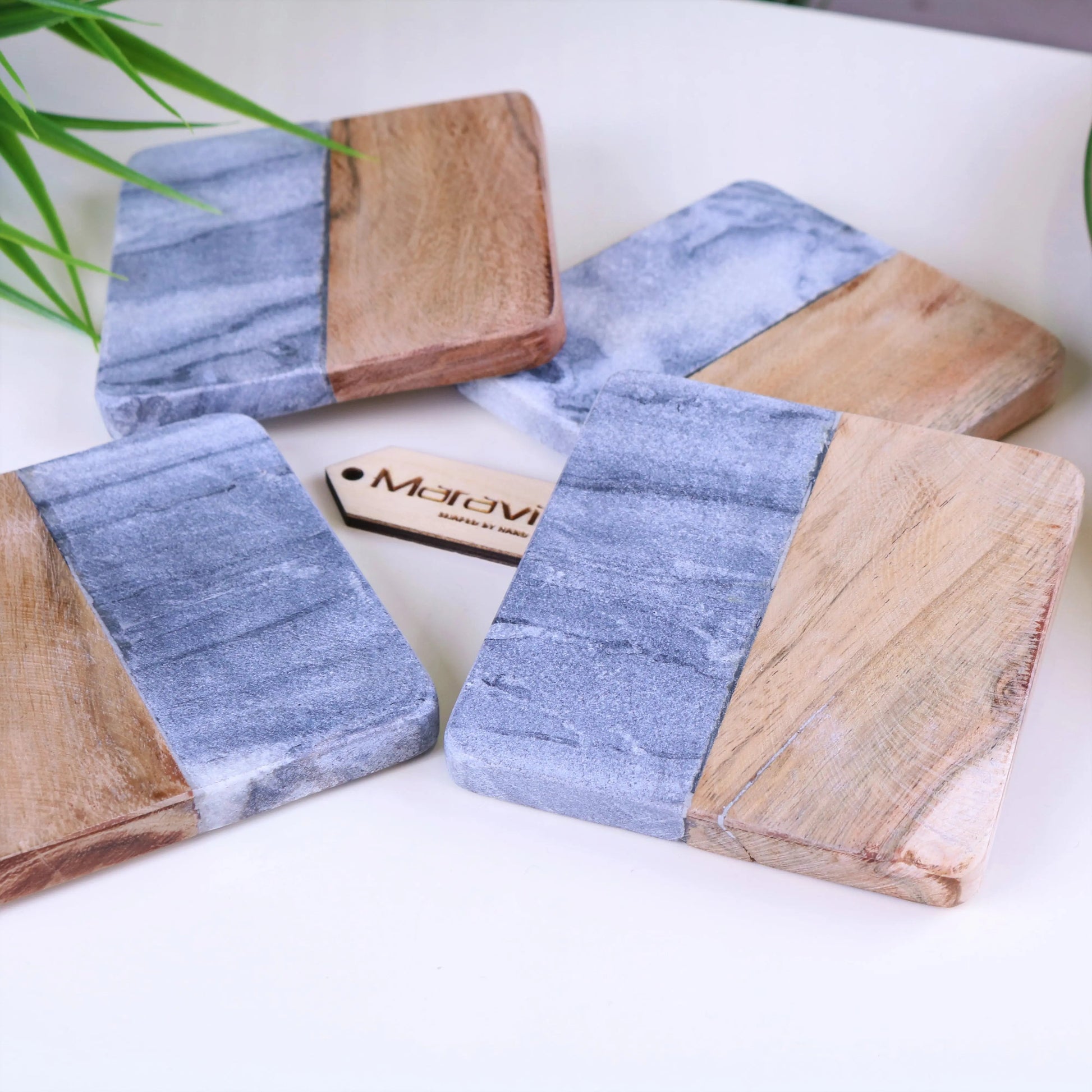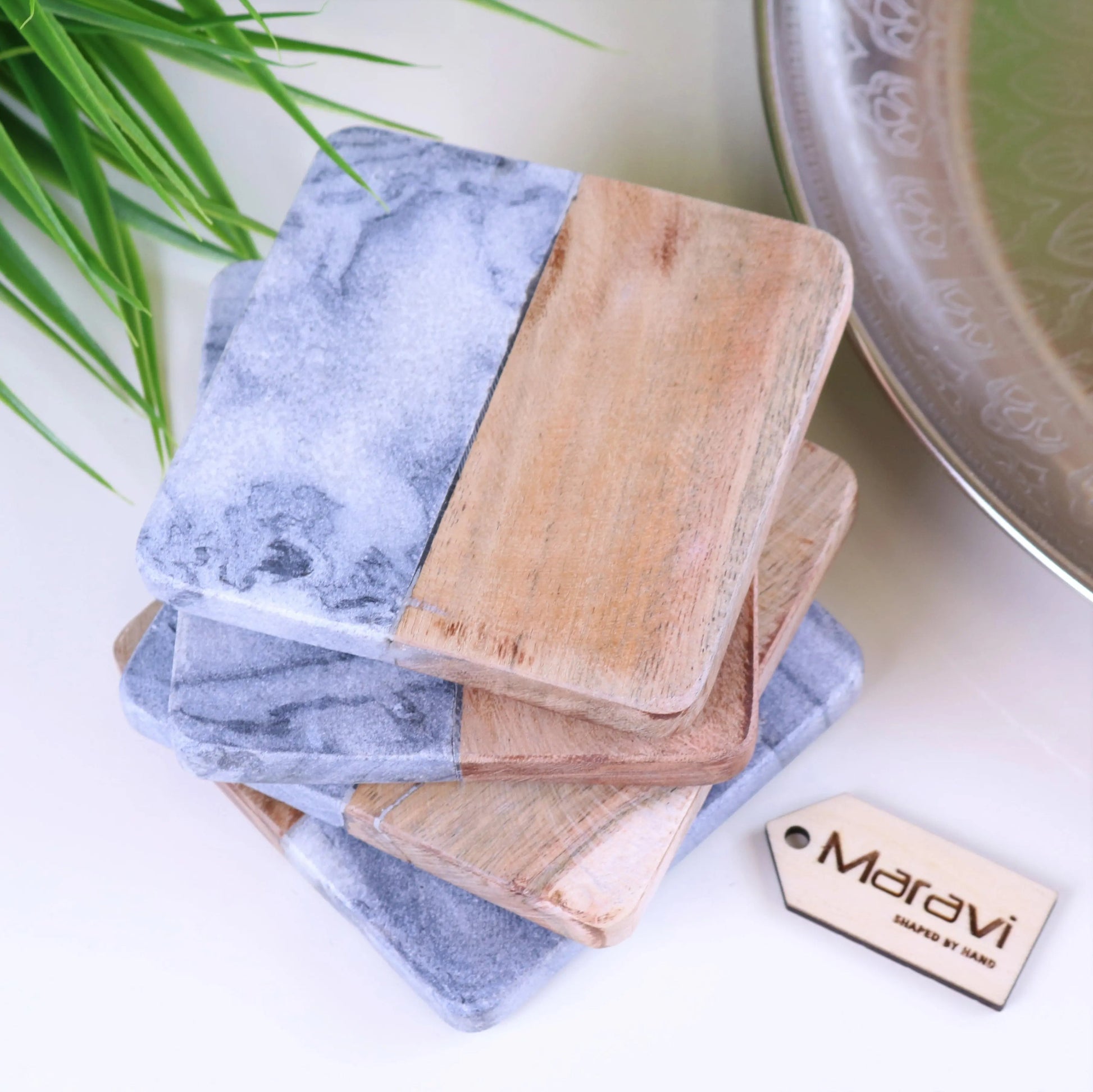 Why Choose Salya Grey Marble and Wood Luxury Coasters?