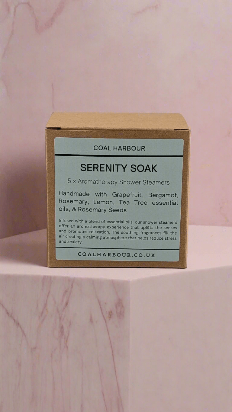 Elevate your daily shower routine with Serenity Soak Shower Steamers, thoughtfully packaged in a convenient box of 5. Each steamer is carefully infused with a refreshing blend of Grapefruit, Bergamot, Rosemary, Lemon Tea Tree, and Rosemary Seeds to create a revitalising and calming atmosphere. As the steam activates these natural extracts, your shower becomes a serene escape that refreshes your mind and uplifts your spirit. Perfect for unwinding after a long day or starting your morning with renewed energy, these shower steamers offer an effortless way to enjoy aromatherapy benefits in the comfort of your own home.