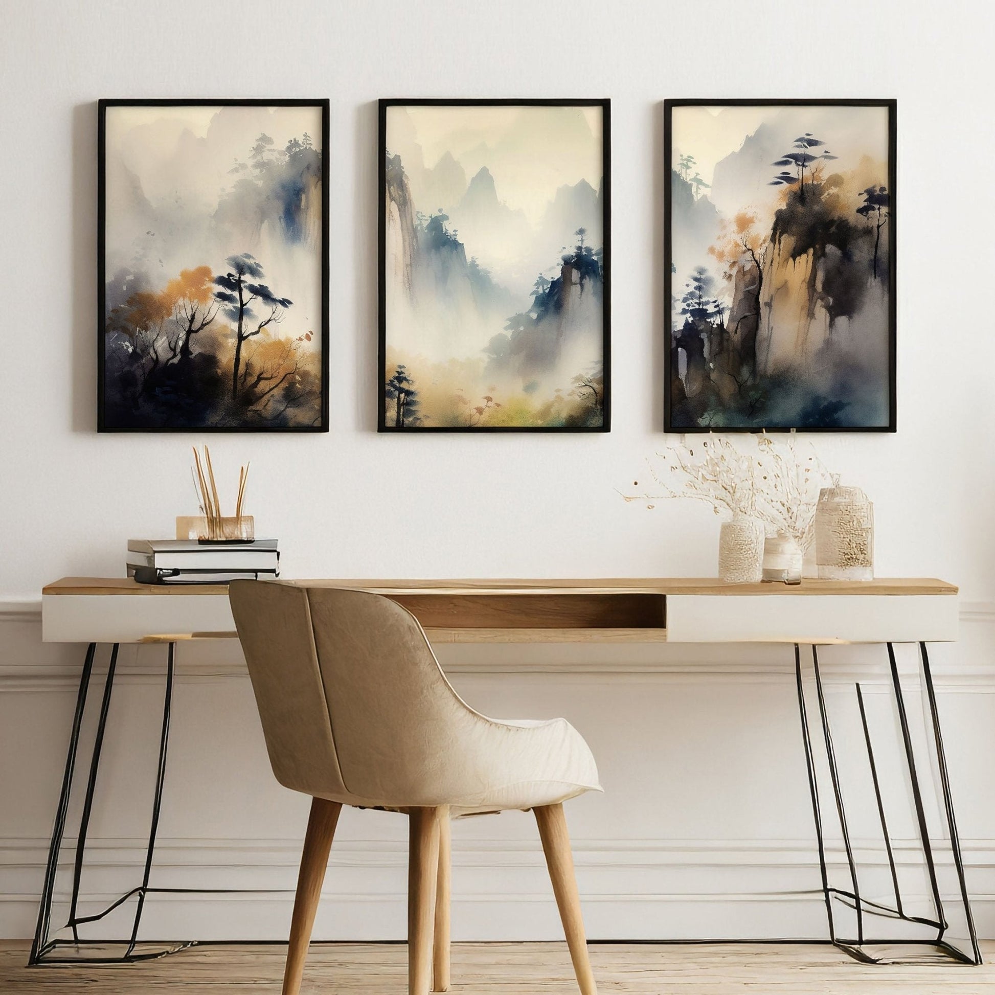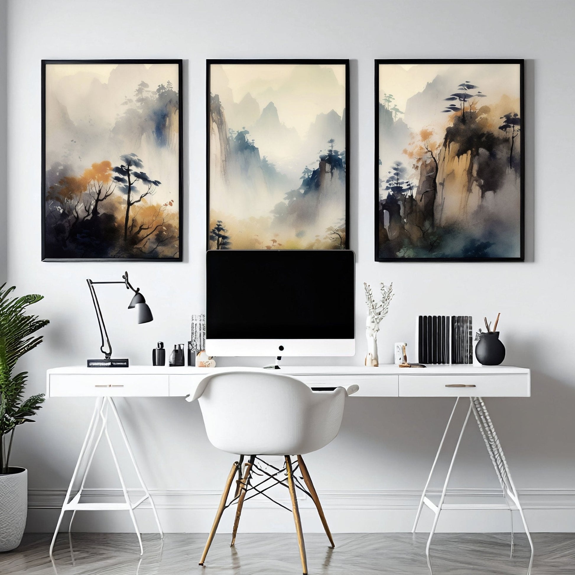 - You will receive a Set of 3 Asian Inspired Wall Art Prints for your office wall art.