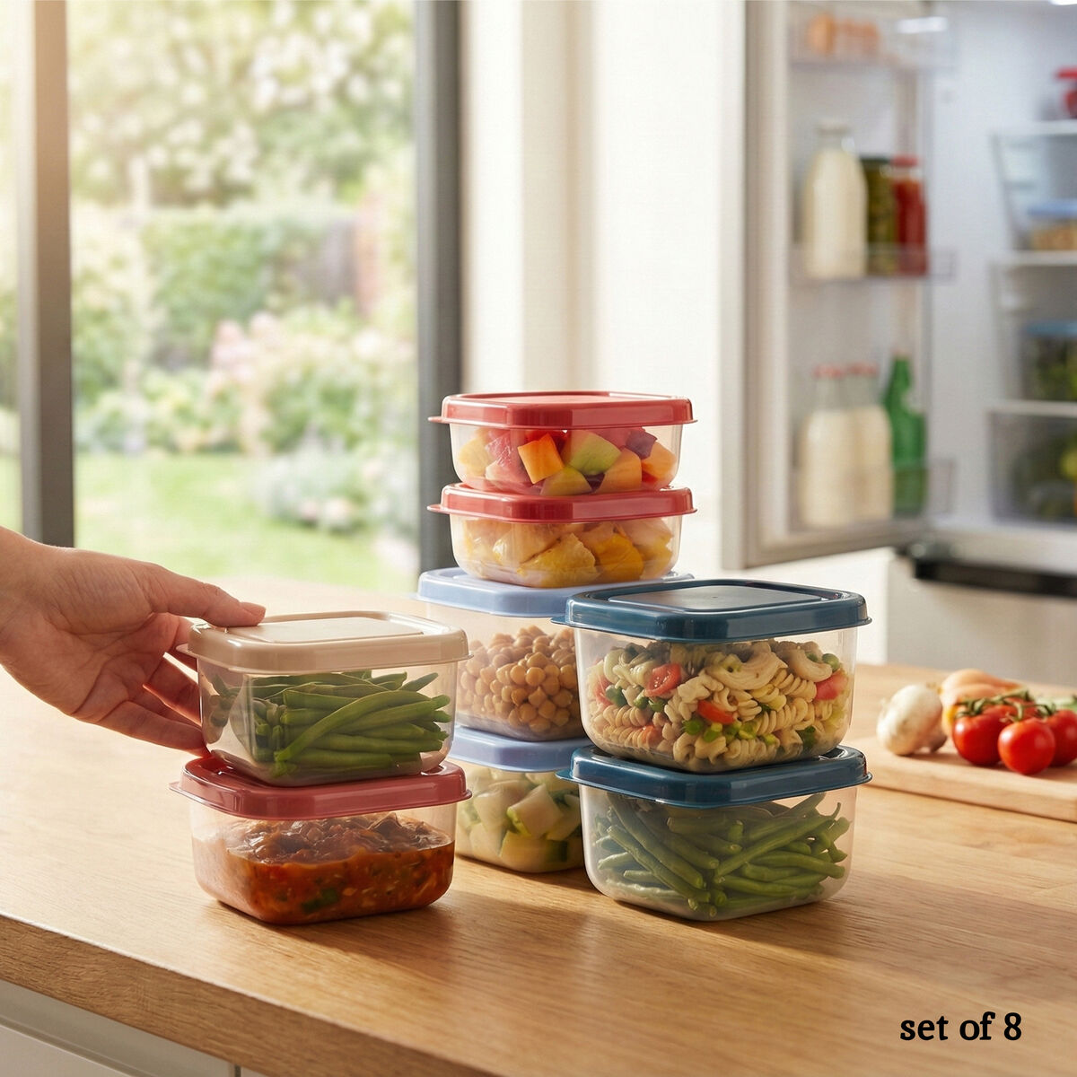 - Eight coordinated minis for portioning and organisation.