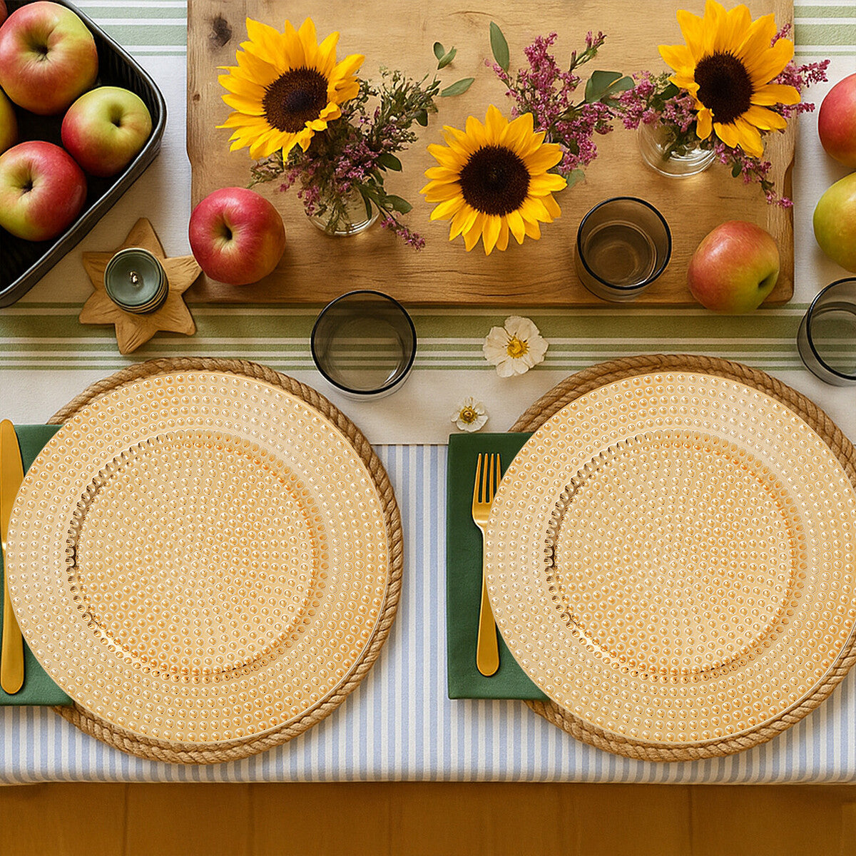 Elegantly designed with smooth edges and hammered patterned, this gold charger plates iare an ideal tableware addition for the festive season and more.