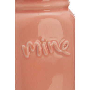 Share your daily ritual with the Pretty Things Set of Yours and Mine Mugs. One coral and one white mug feature playful 'mine' and 'yours' lettering for effortless pairing. These gift-ready mugs bring a modern twist to the rustic jar silhouette loved in cosy kitchens.