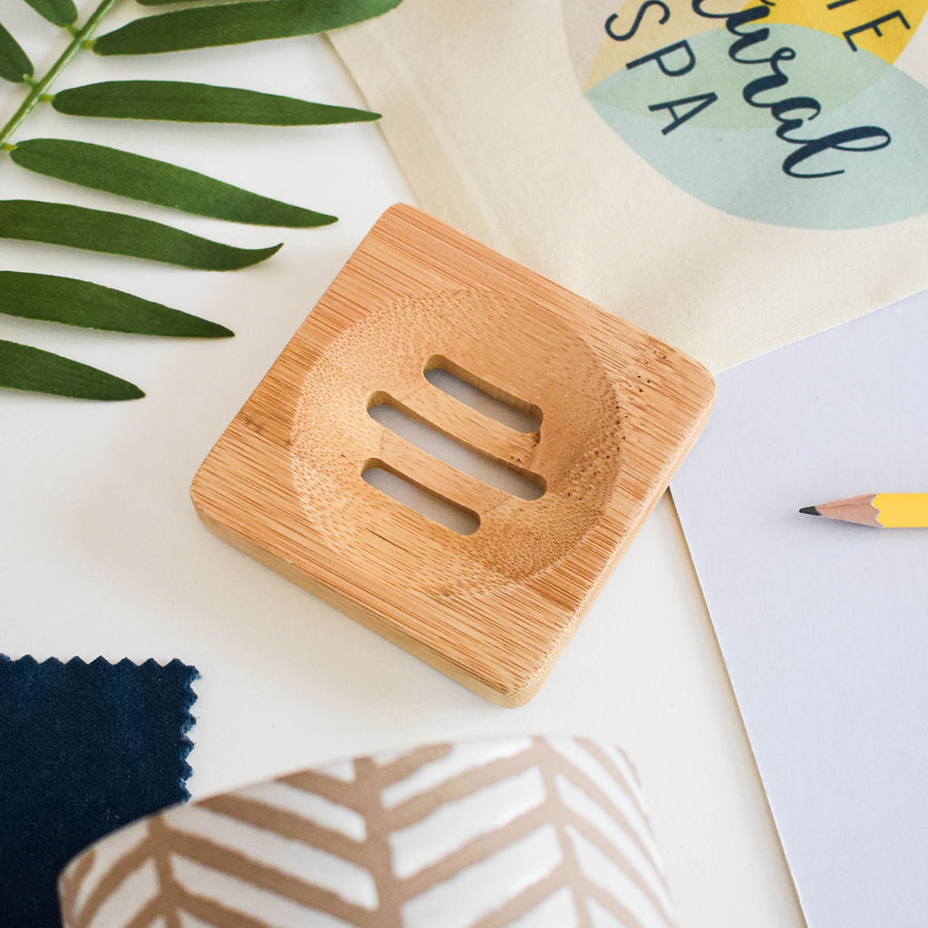 Available in two different styles these Bamboo soap dishes are an effective way to drain your Natural Spa products in between uses. By draining our soap, shampoo or conditioner bars you can increase the usage by up to 100 %.