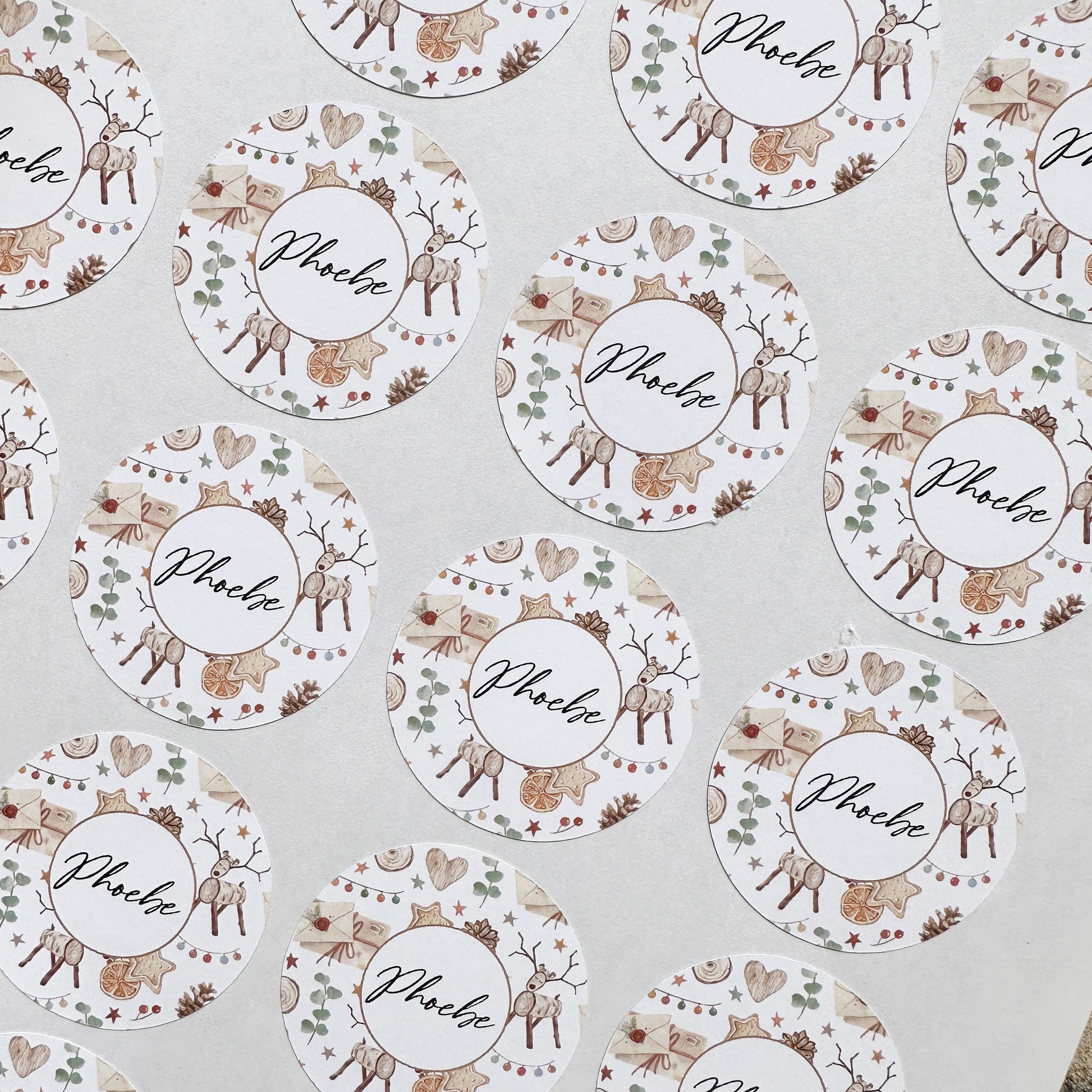 Sheet Of 24 Personalised Name Neutral Reindeer Christmas Present Stickers Gift Labels Christmas stickers