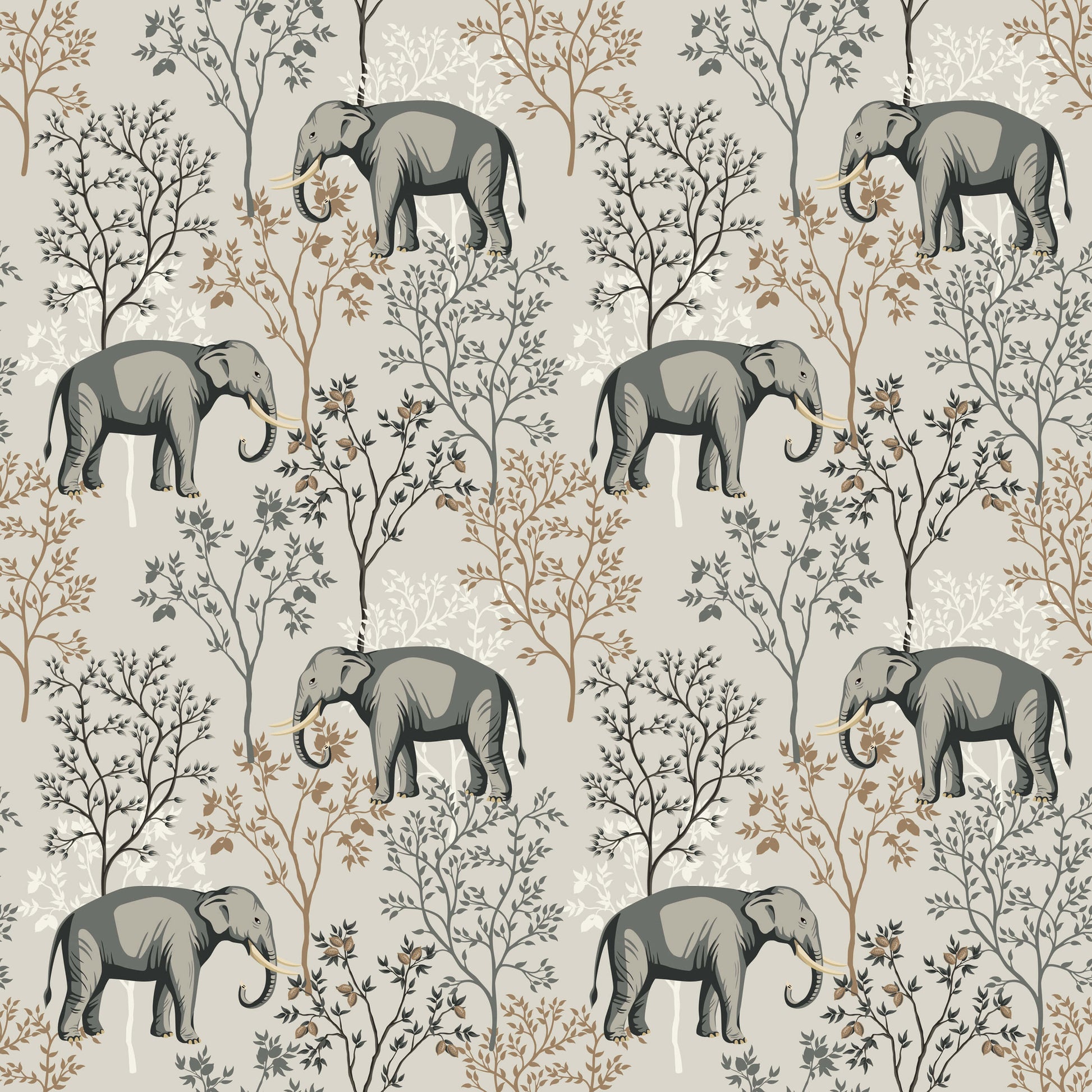 This charming elephant wallpaper comes in soft brown tones and features the majestic animals amongst a variety of trees and bushes. The soft earthy tones and fine details bring a sense of calm, balance, making it ideal for living rooms, bedrooms, or cosy reading nooks. Its a versatile design that pairs beautifully with natural textures, wooden furniture, and soft textiles, creating a warm and inviting atmosphere. Perfect for those who love nature, wildlife, and subtle yet stylish interiors.