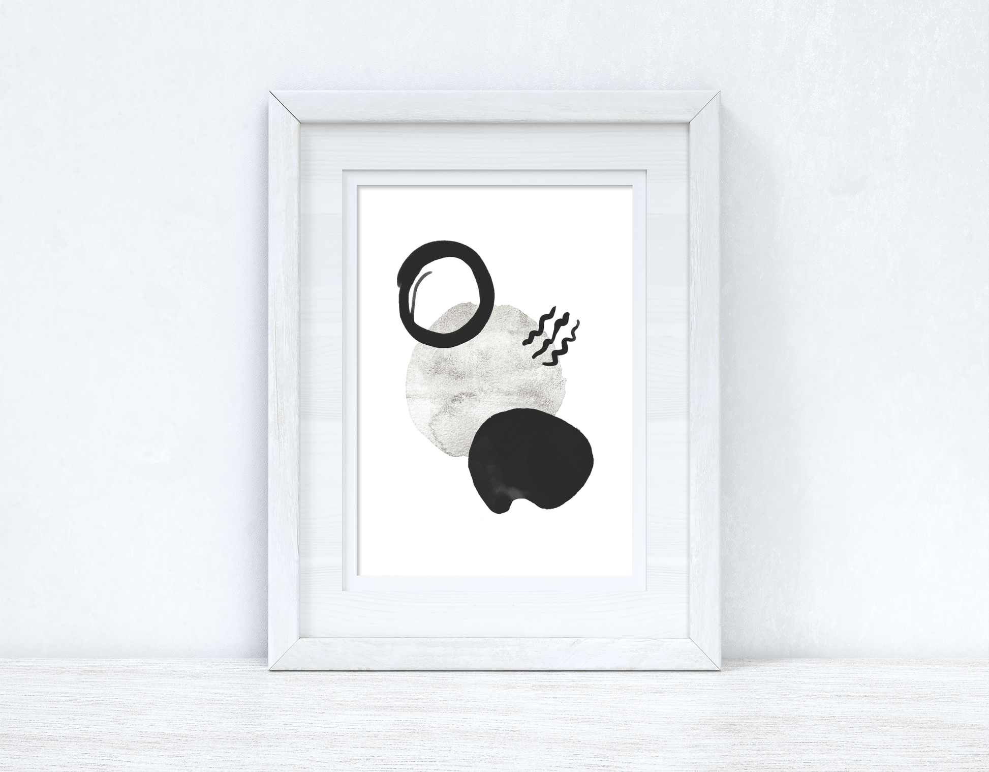 Silver Grey Black Abstract 2 Colour Shapes Home Wall Decor Print