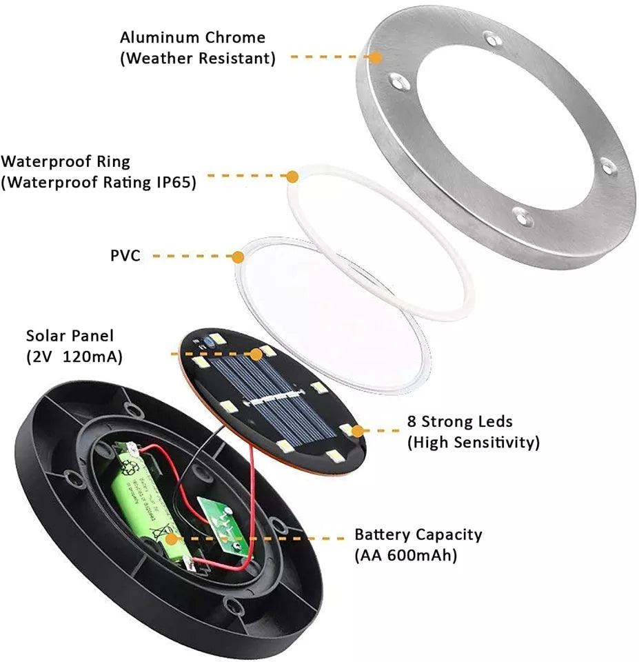 Silver LED Solar Ground Stake Lights - Warm White IP65 Waterproof