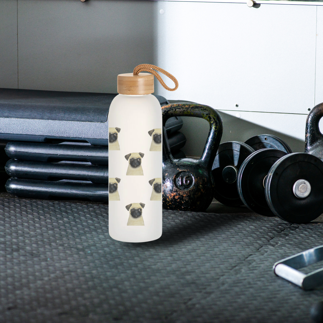 Is it a water bottle? Is it a portable shrine to your favorite snorting spud? Yes and yes. Featuring your pug (aka the snorty potato) on elegant frosted glass with a sleek bamboo lid, this bottle is here to remind you: drink water, love pugs, repeat. Perfect for work, workouts, or just pretending to work out.