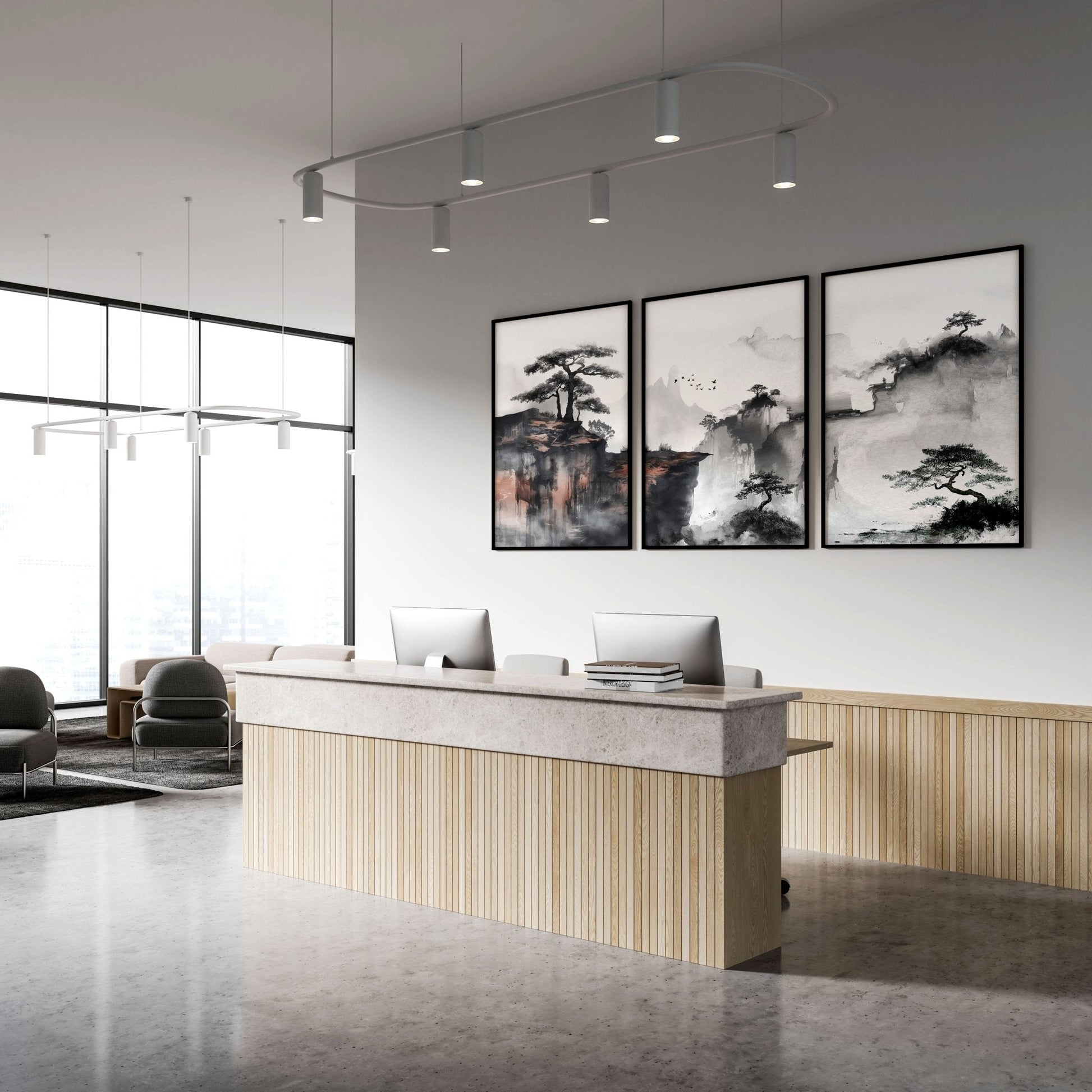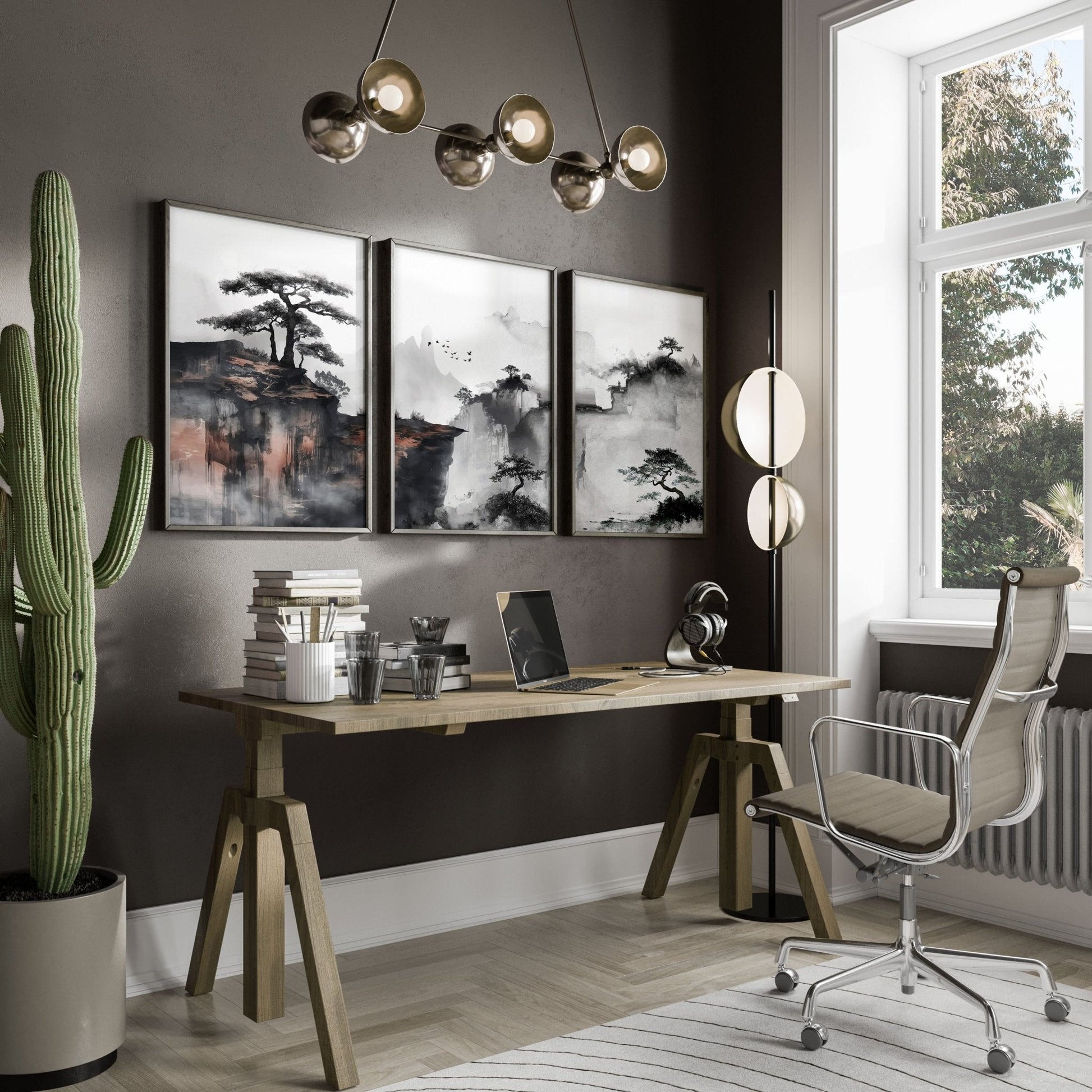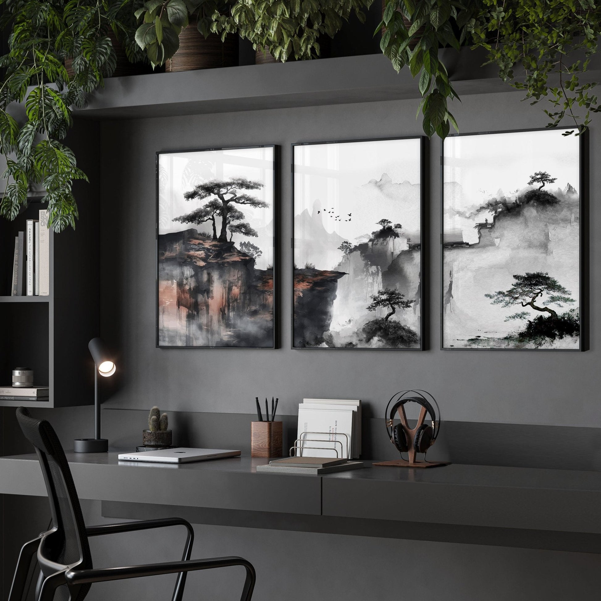 - You will receive a Set of 3 Asian Inspired Wall Art Prints for your office wall art.