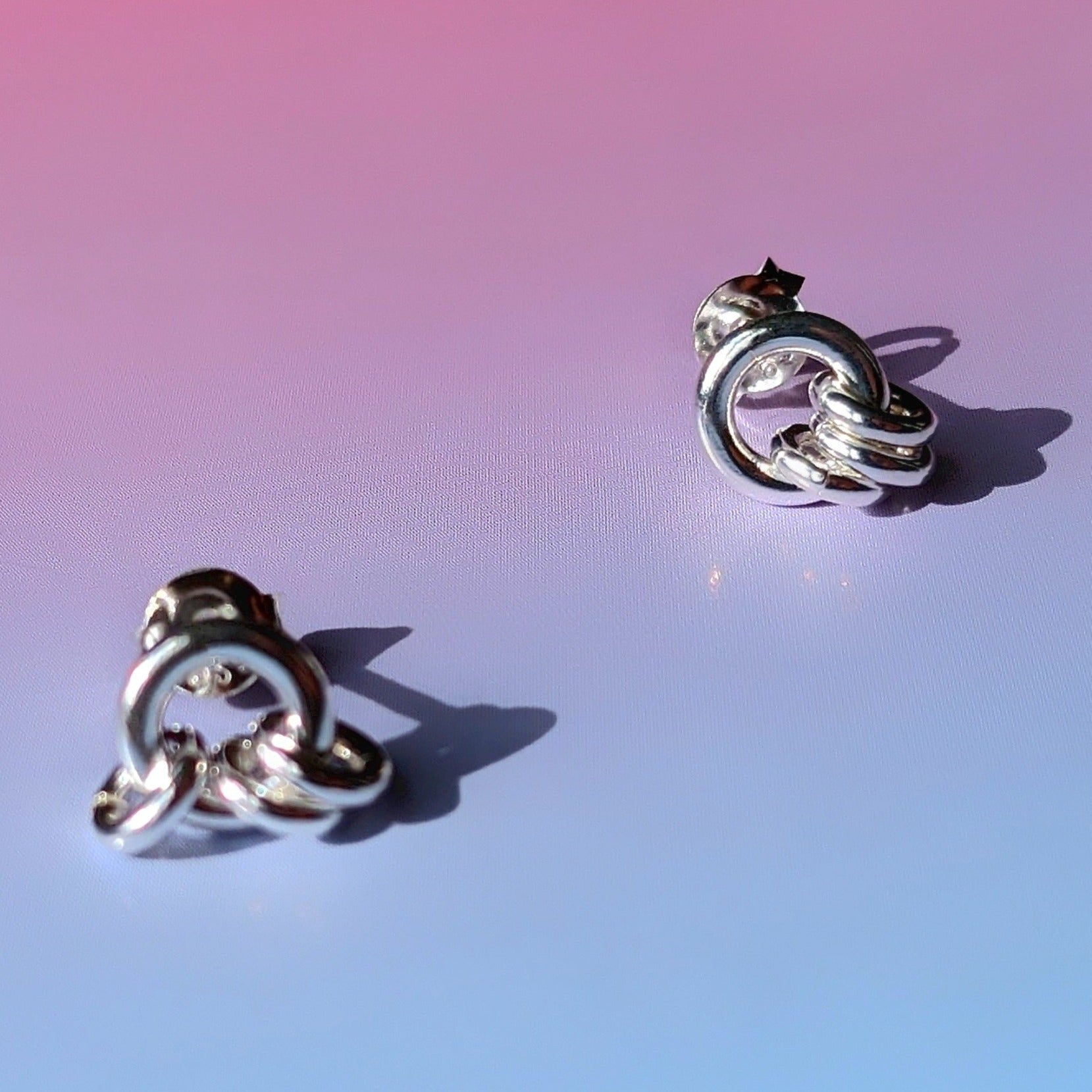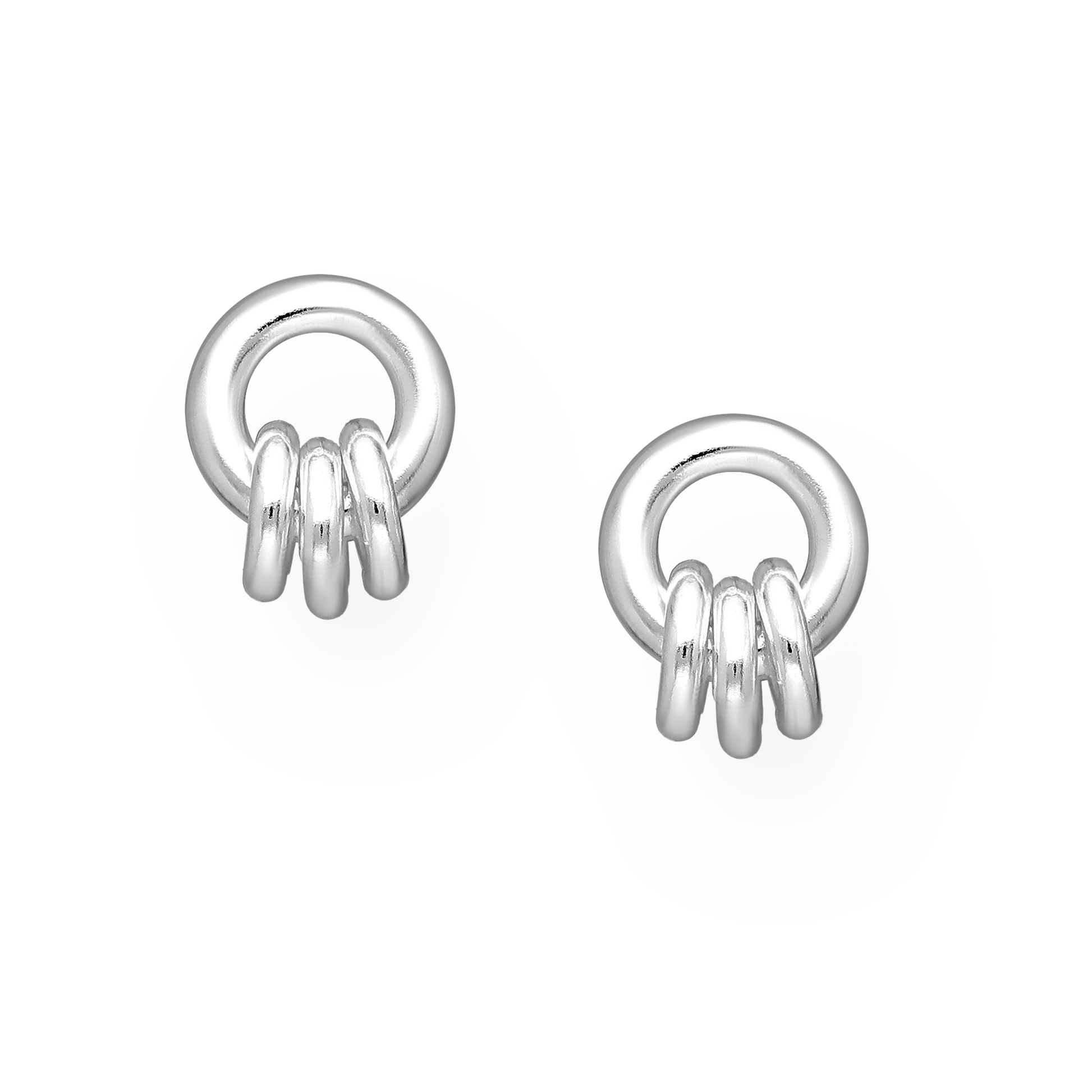 These sterling silver stud earrings combine a minimalist hoop design with a playful cluster of free-moving rings, creating a unique and contemporary look. A fulfilling design on its own, or an excellent choice for the second piercing. Perfect for everyday wear or adding a subtle statement to your outfit, they are a versatile addition to any jewellery collection.