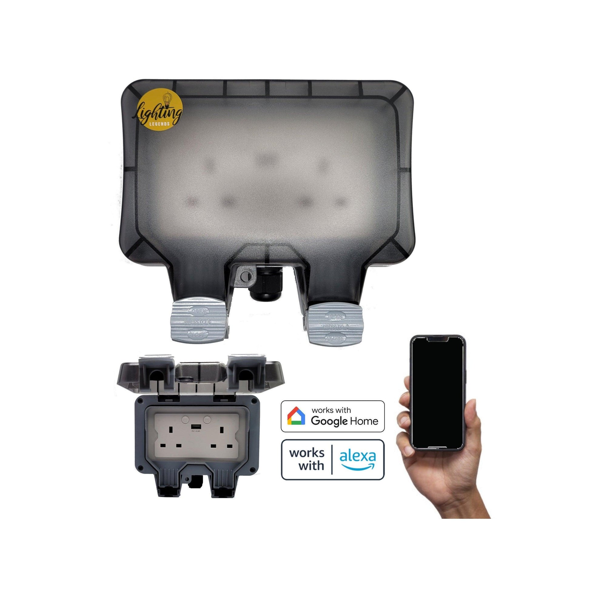 Smart WiFi Waterproof Outdoor Double UK Plug Socket + USB