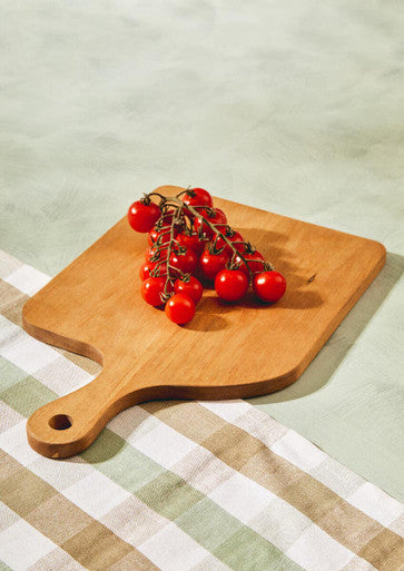 Handcrafted from acacia wood, this paddle board contours into a curved rectangular shape witha handle. A rounded handle gives a firm grip, completed with a hanging loop for efficient storage.