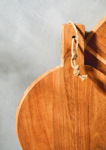 Carved from sustainable acacia wood, the Socorro small board has a straight graining in light and dark natural hues. Featuring a paddle design, it has a rectangular handle for a secure hold while serving or cutting food items.