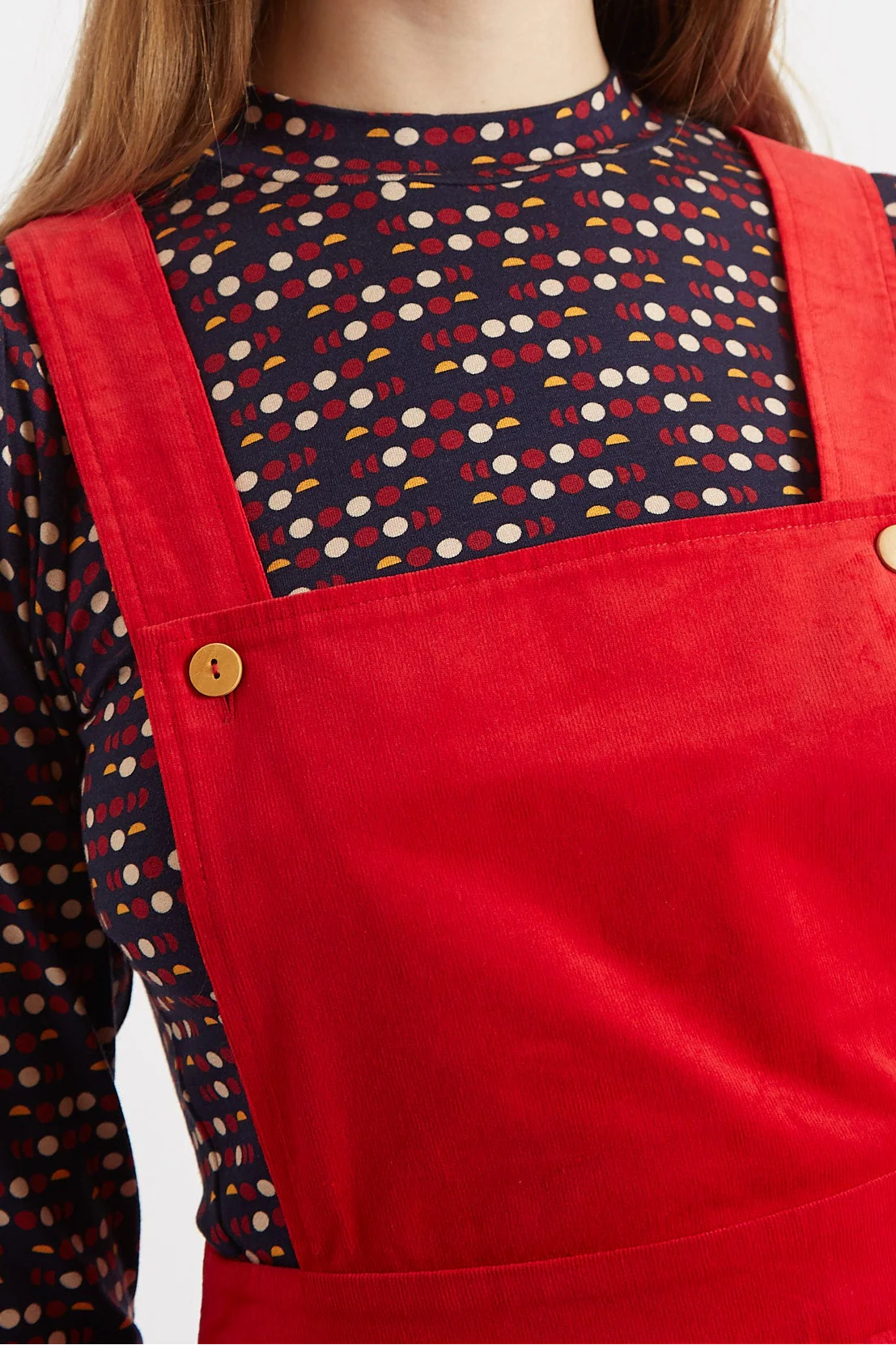 The Sofiya Baby cord mini pinafore dress is the perfect choice for those who want to combine style and practicality. Crafted in a super soft baby cord, and features deep pockets and adjustable straps for convenience. The bright red colour will energise those grey winterly days.