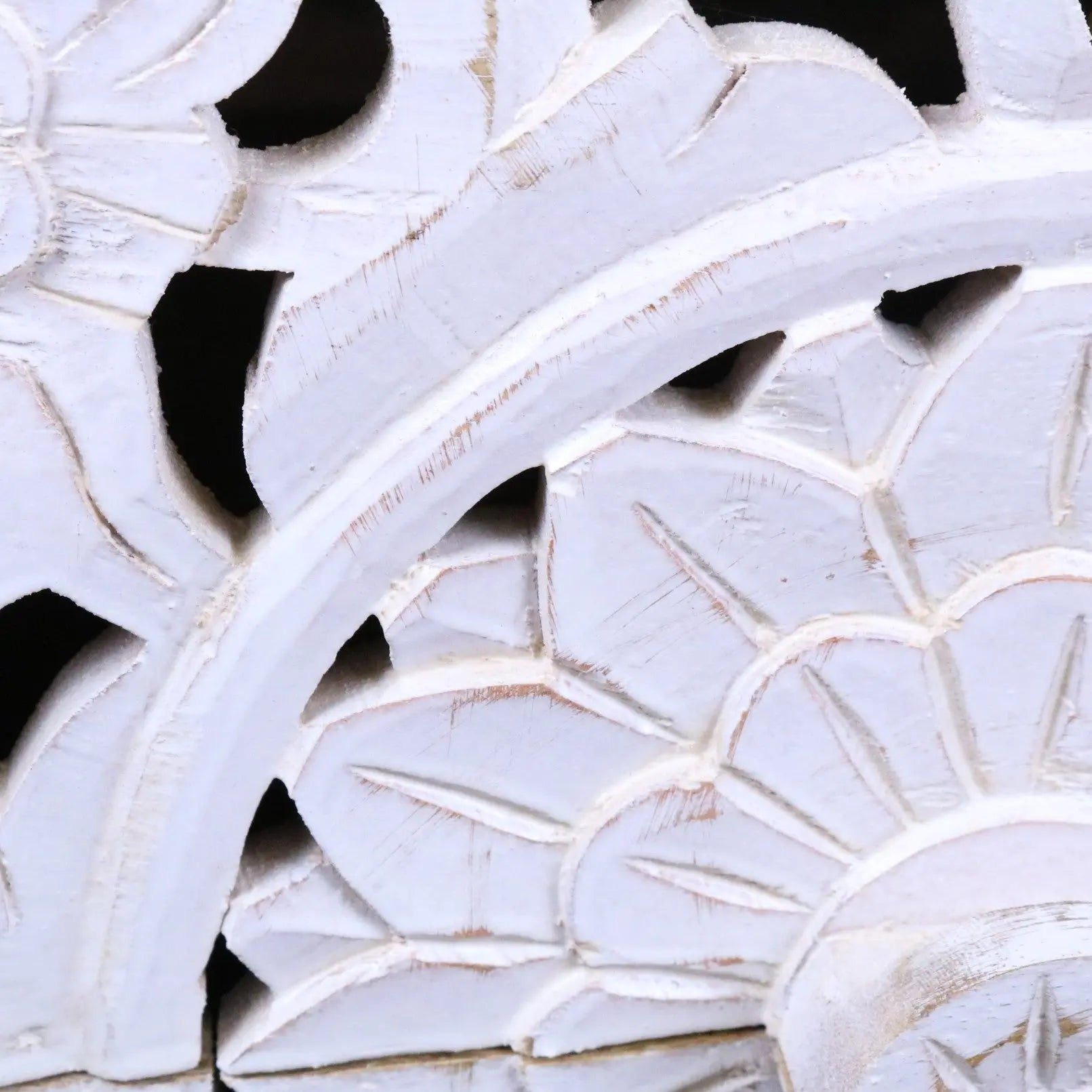 Hand-Carved Floral Motifs: Featuring a detailed mandala and leafy vines, each table is uniquely crafted by skilled artisans in North India.