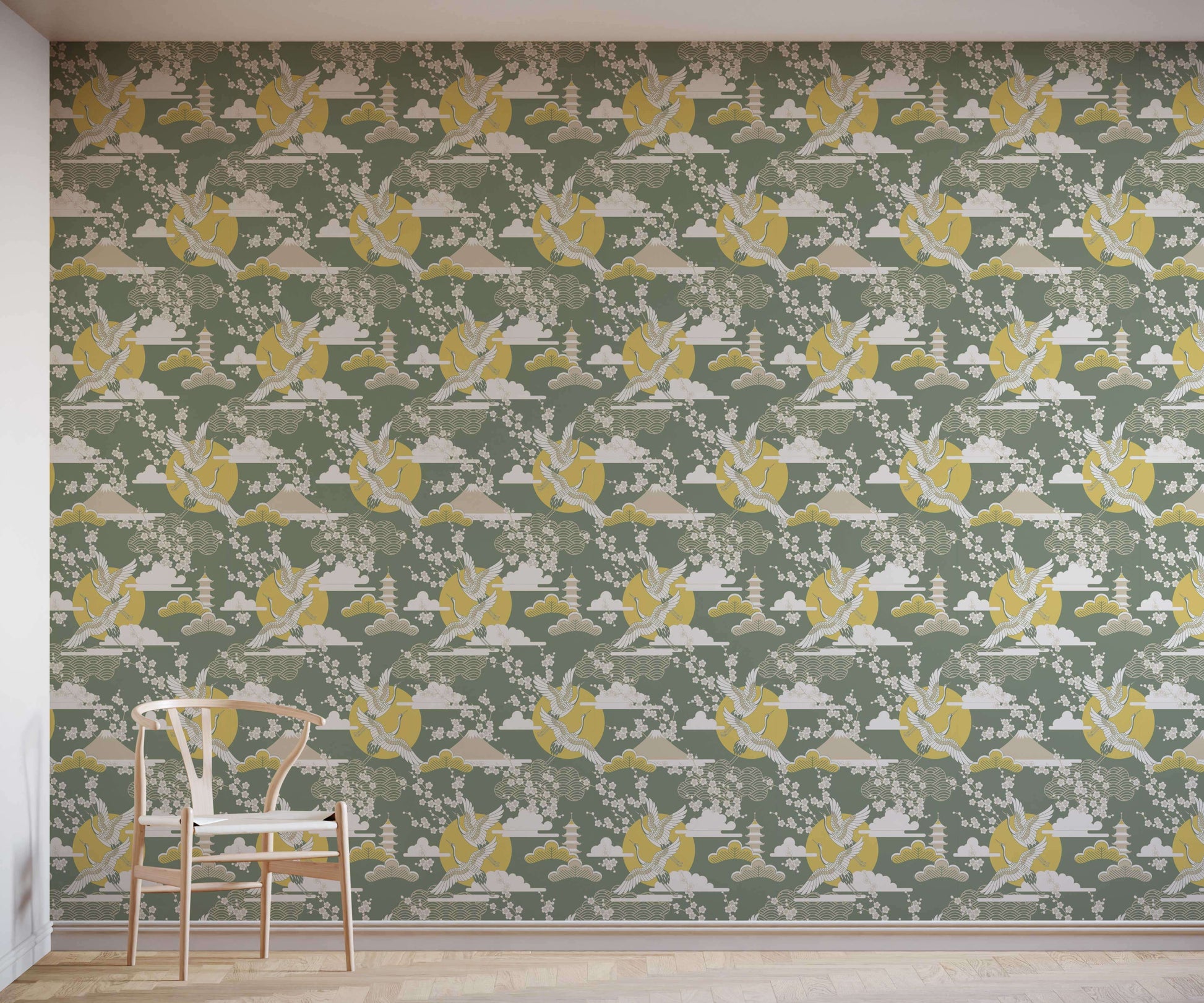 Birds are one of the best animals used within decoration for bringing a sense of calm and tranquility into a space. It has got to be said that no bird does it better than the Red Crowned Crane. In our 'Sola' wallpaper, they are set alongside cherry blossom and other oriental inspired motifs to create a design that is perfect for styling into a Japandi setting.