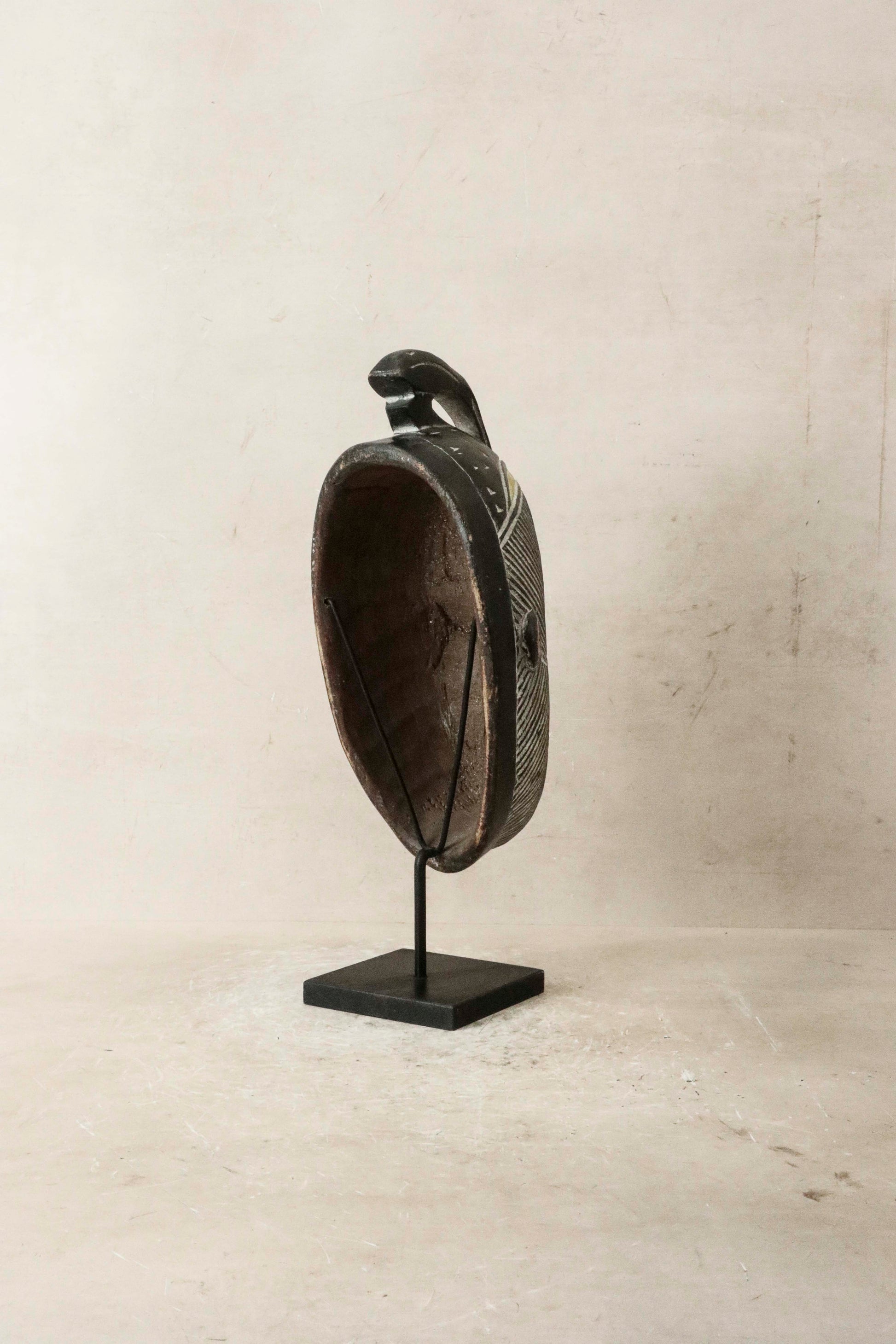 The Songye mask is an extraordinary and culturally significant art piece originating from the Songye people of the Democratic Republic of Congo. These masks are characterized by their iconic features, including a highly arched forehead and prominent eyes, all meticulously carved from wood.