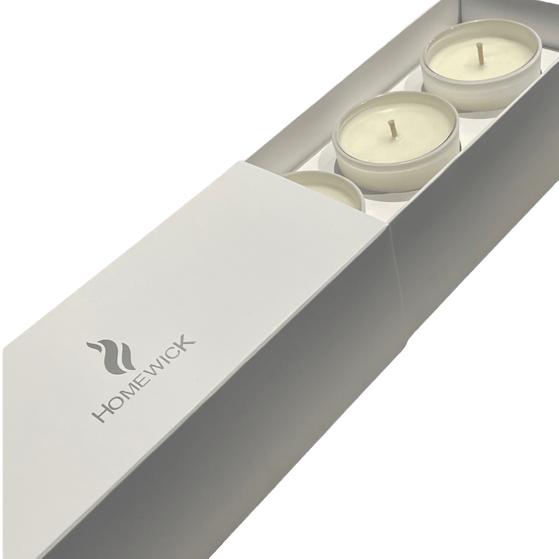 Trio of mini white candles, 35 hour minimum burn time in each candle. 100% natural soy wax, vegan friendly and cruelty free.