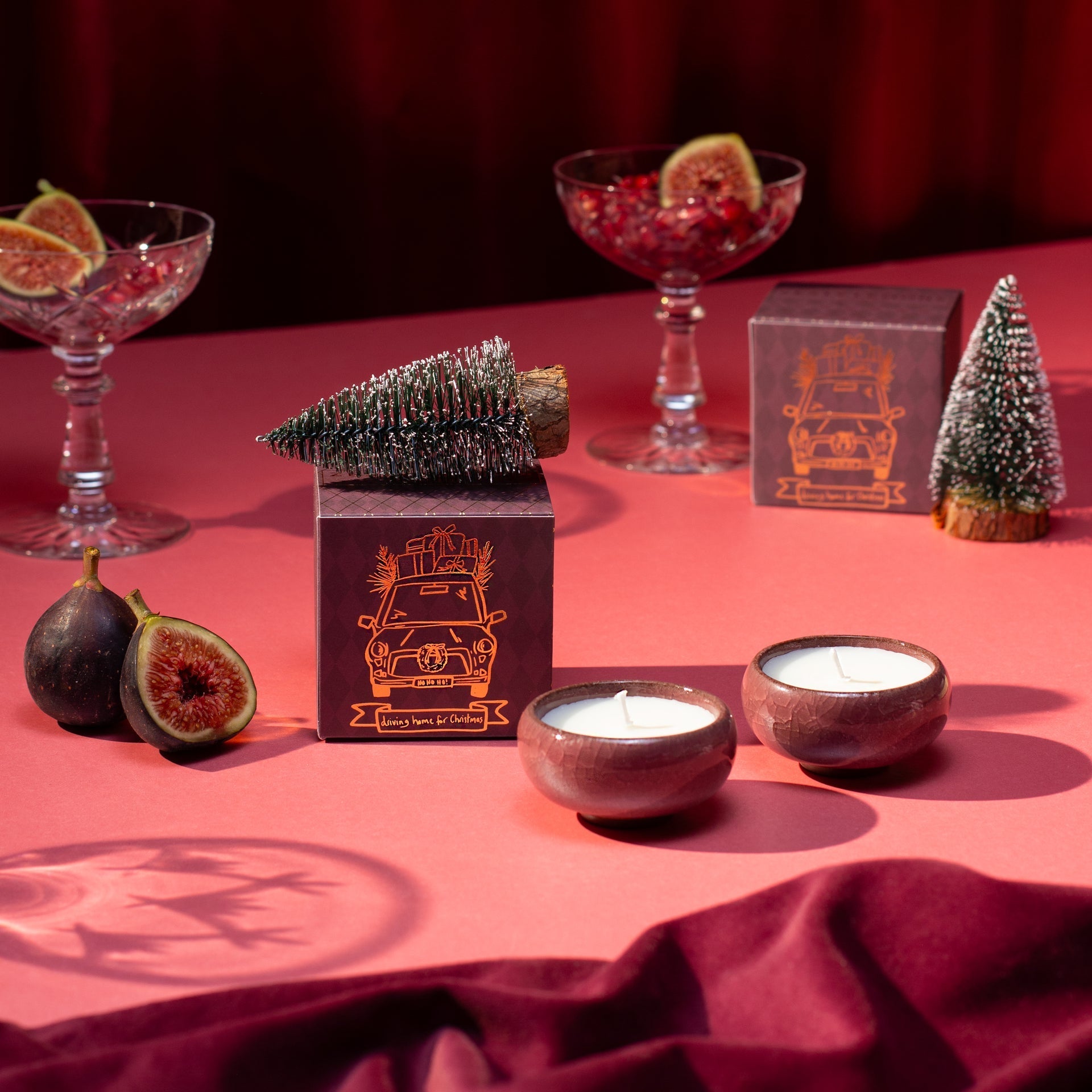 Each box contains two of our best-selling ceramic tea light vessels, filled with a cosy seasonal scent and designed to be repurposed long after the wax is gone. Presented in a playful 3D Christmas-themed gift box, containing artist illustrations and a Christmas tree decoration, it’s a charming keepsake in itself - no wrapping required.