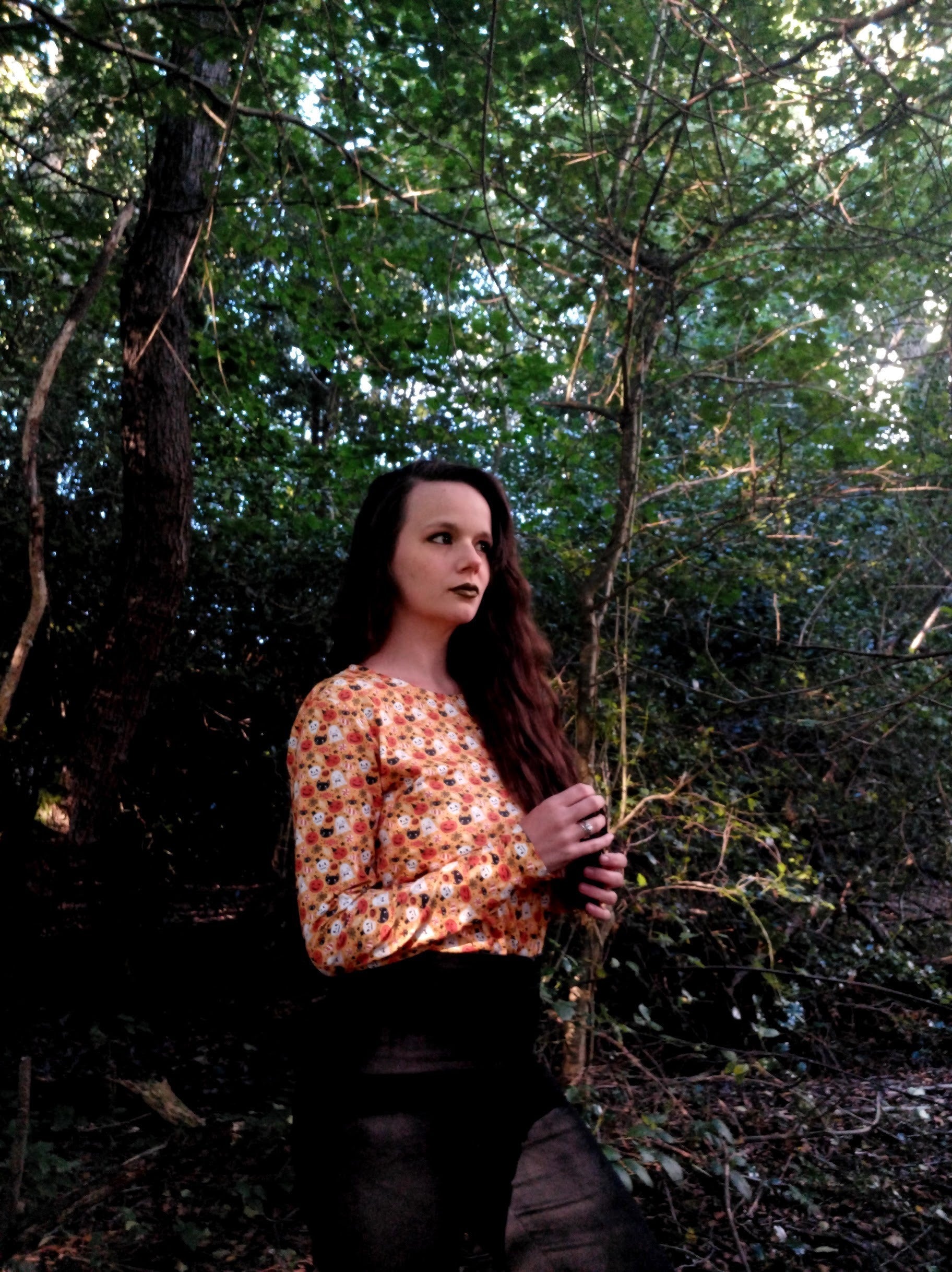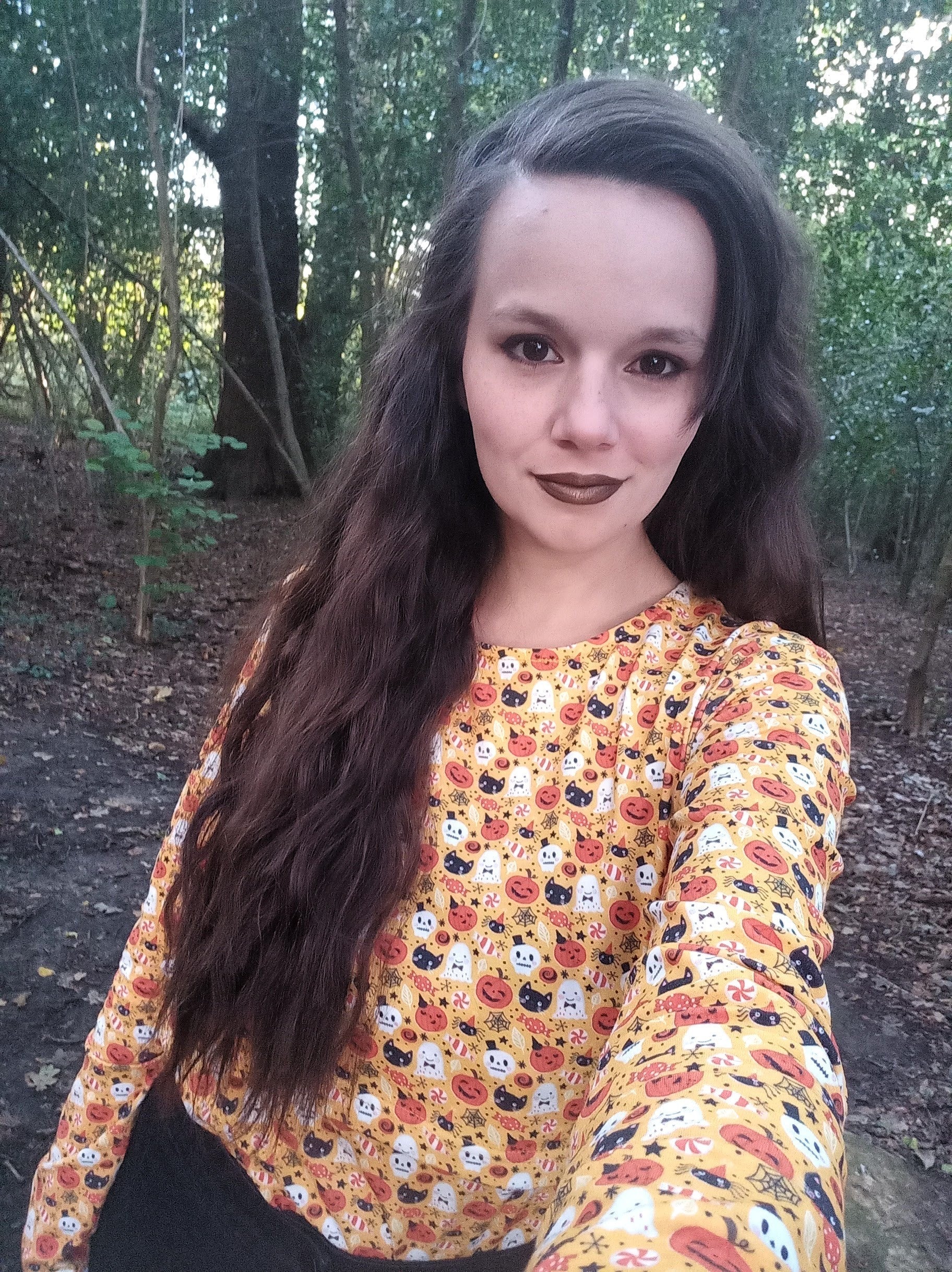 Although this nursing top was chosen with a Halloween theme in mind..... we just love the colours and decided that we will wear our twinning tops all year around ! Just team with a nursing bra and you have super easy and discreet breastfeeding without covering up your little one - allowing you to maintain eye contact !