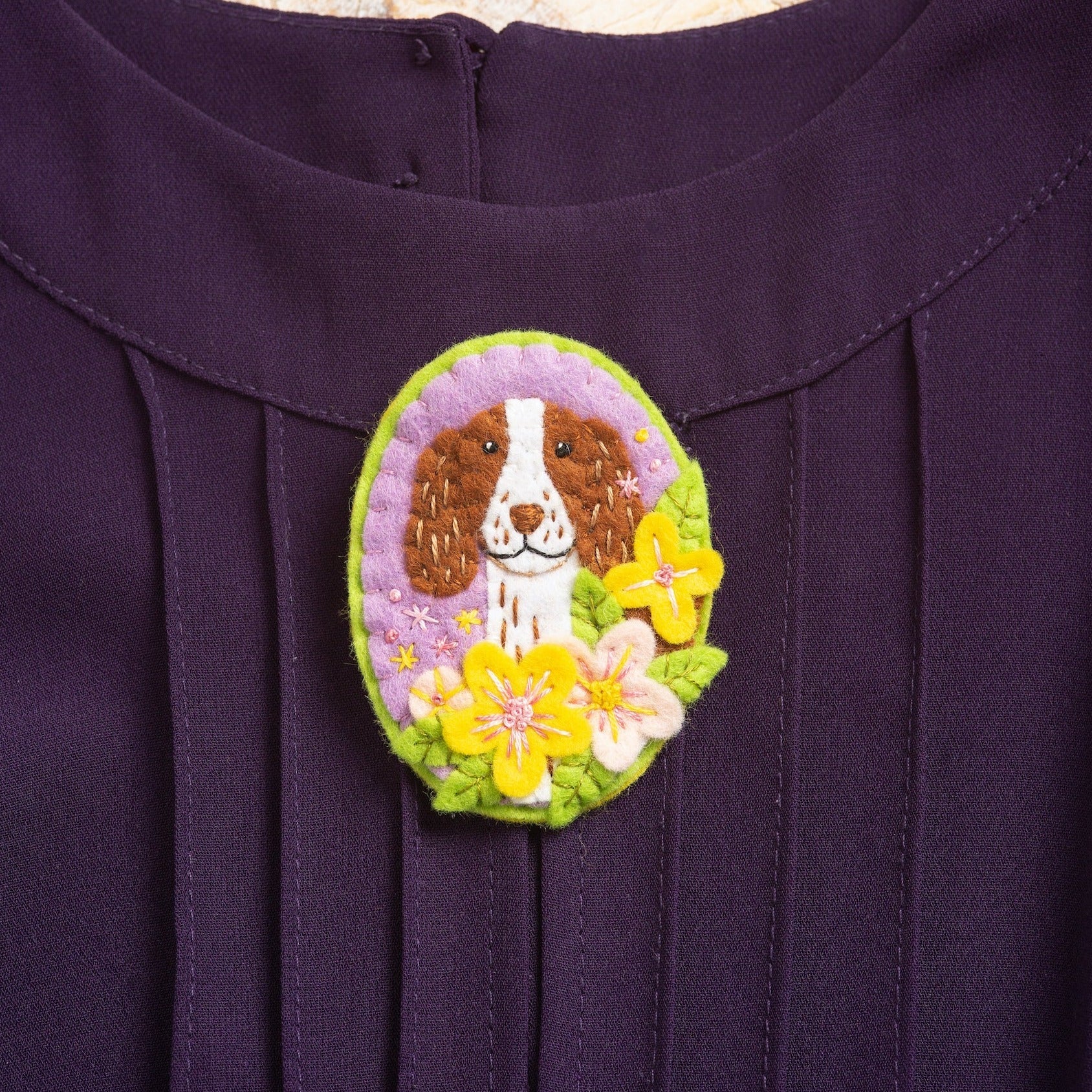 'Springer Spaniel' Dog Felt Craft Brooch Kit for Beginners