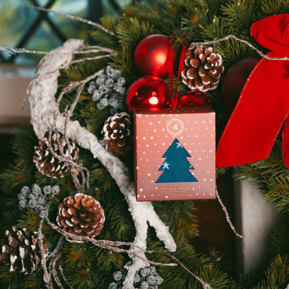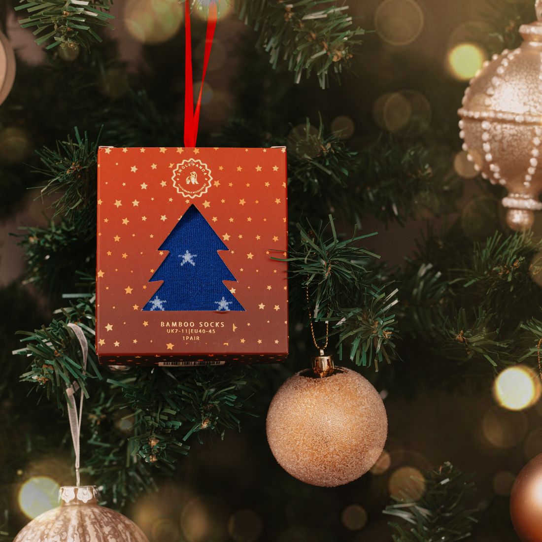 Are you looking for a unique present? Treat yourself or somebody special to this luxury gift box containing a pair of our Star Bamboo Socks. Complete with a ribbon, this box can be hung on a Christmas tree or as a decoration. They are knitted from our unique bamboo blend offering the subtle touch of stand out style.