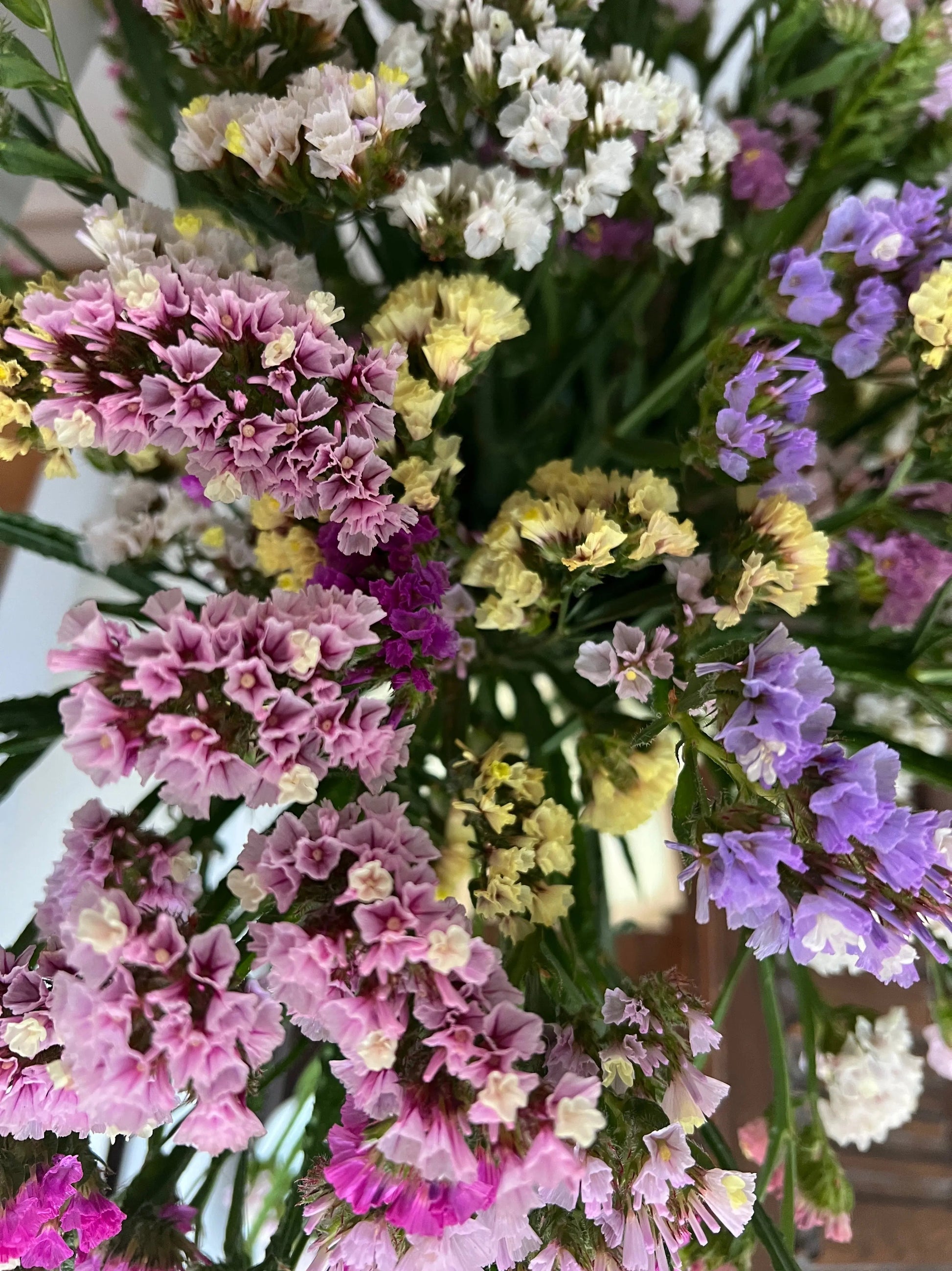 This mix produces a vibrant spectrum of colours, including deep violet, rose, apricot, yellow, blue, and pure white. The colourful parts of the plant are actually papery calyces rather than petals, which means they feel crisp and dry even while the plant is still growing in the garden. Because of this, they hold their brilliant colour for years after being harvested, making them an essential ingredient for everlasting bouquets, dried arrangements, and winter wreaths.