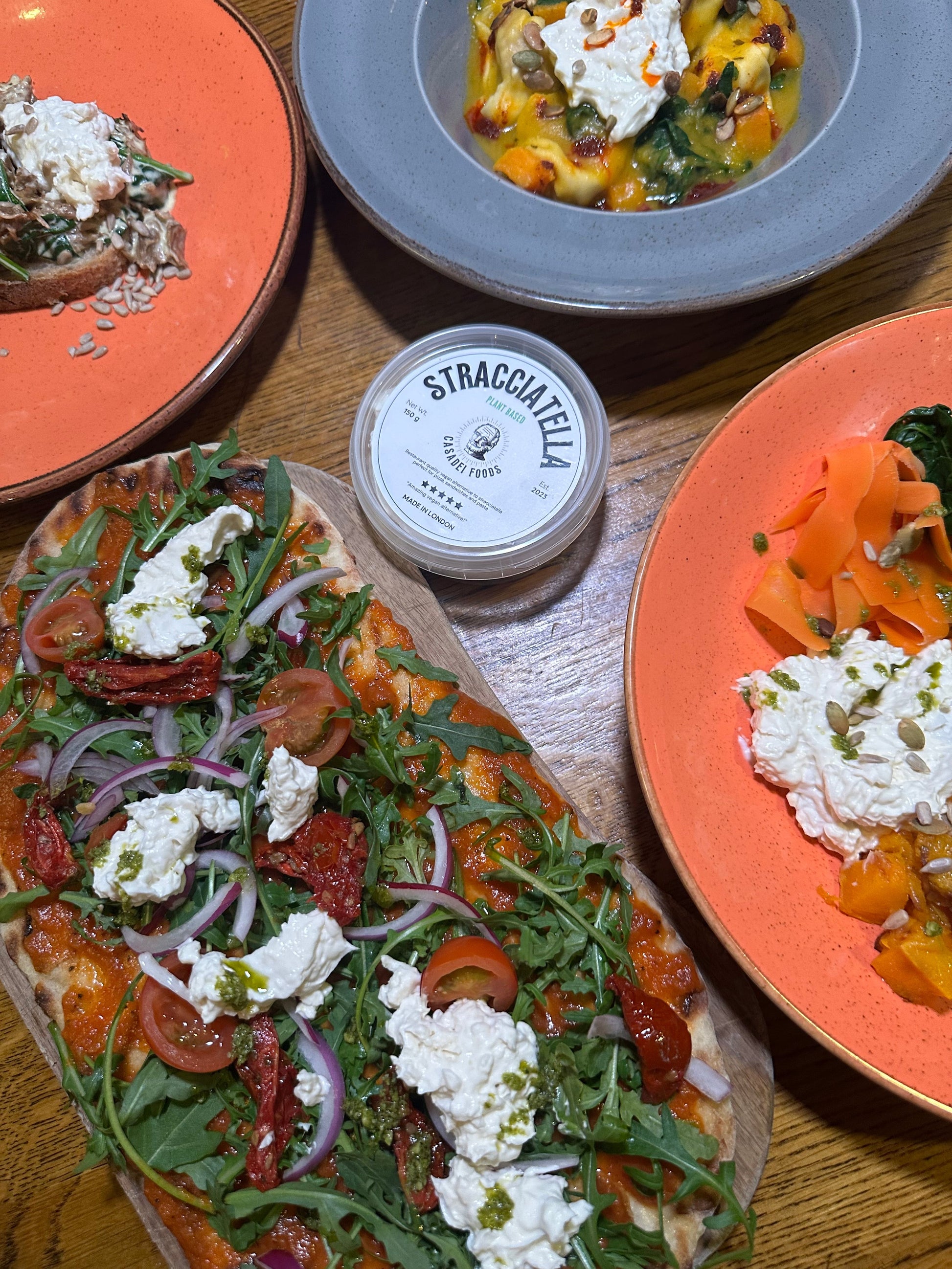 Our plant-based Stracciatella delivers everything you'd expect from its dairy counterpart: a rich, spoonable texture, a clean melt, and a subtly tangy flavour. It’s made to perform under heat – ideal for finishing Neapolitan-style pizzas, pasta, salads or layering over warm focaccia.