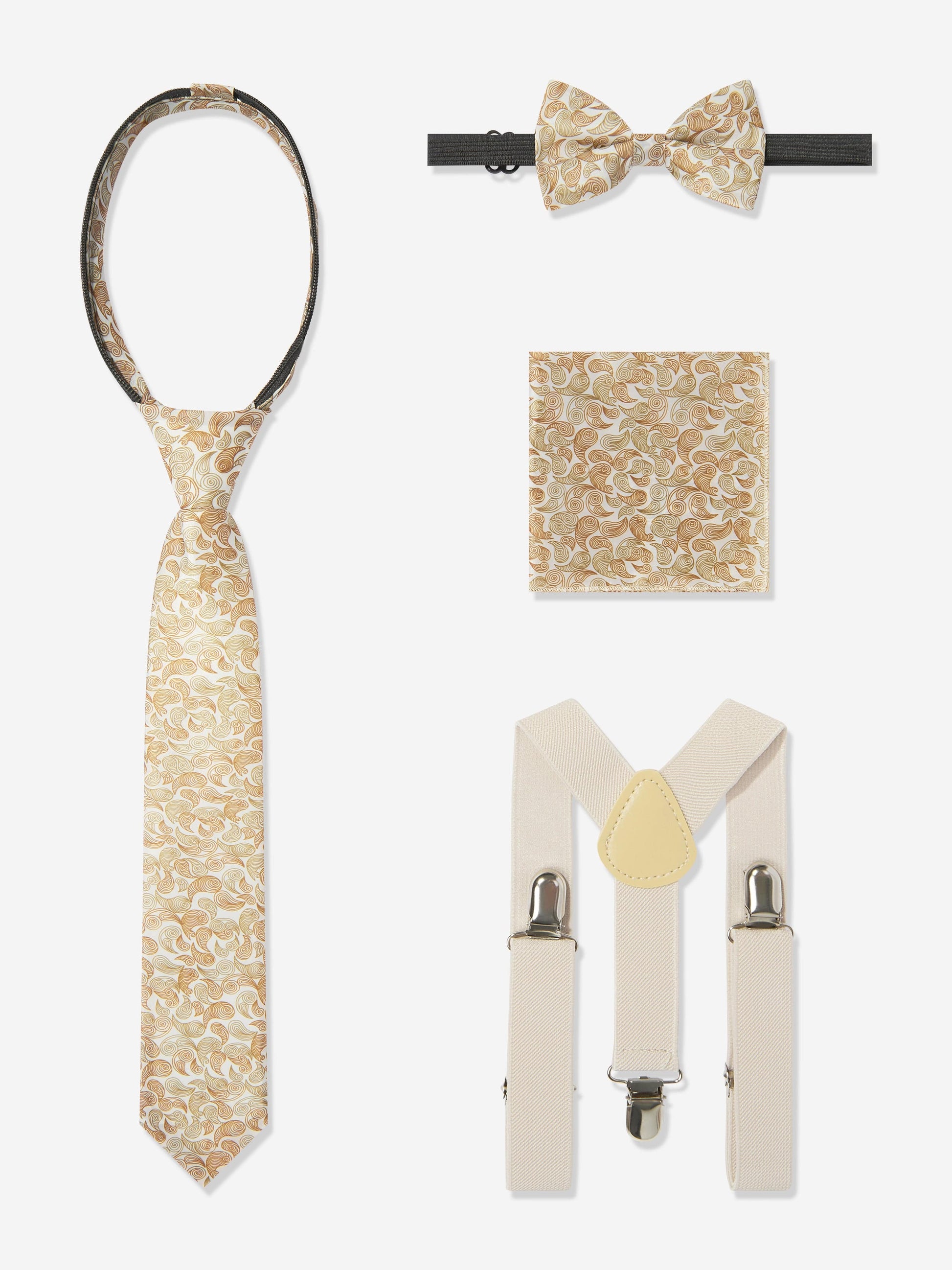 • Contains: Jacket, Trouser, Waistcoat, Suspenders, Tie, Bow-Tie, Handkerchief.