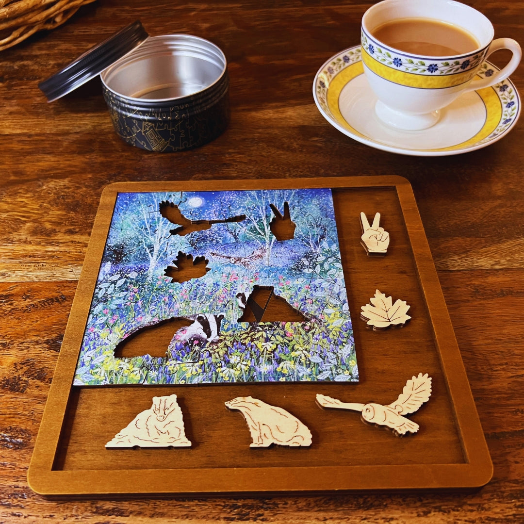 Our MINI QT puzzles are laser cut from thick, 4mm plywood and include 5 whimsies - they make a great puzzle snack!