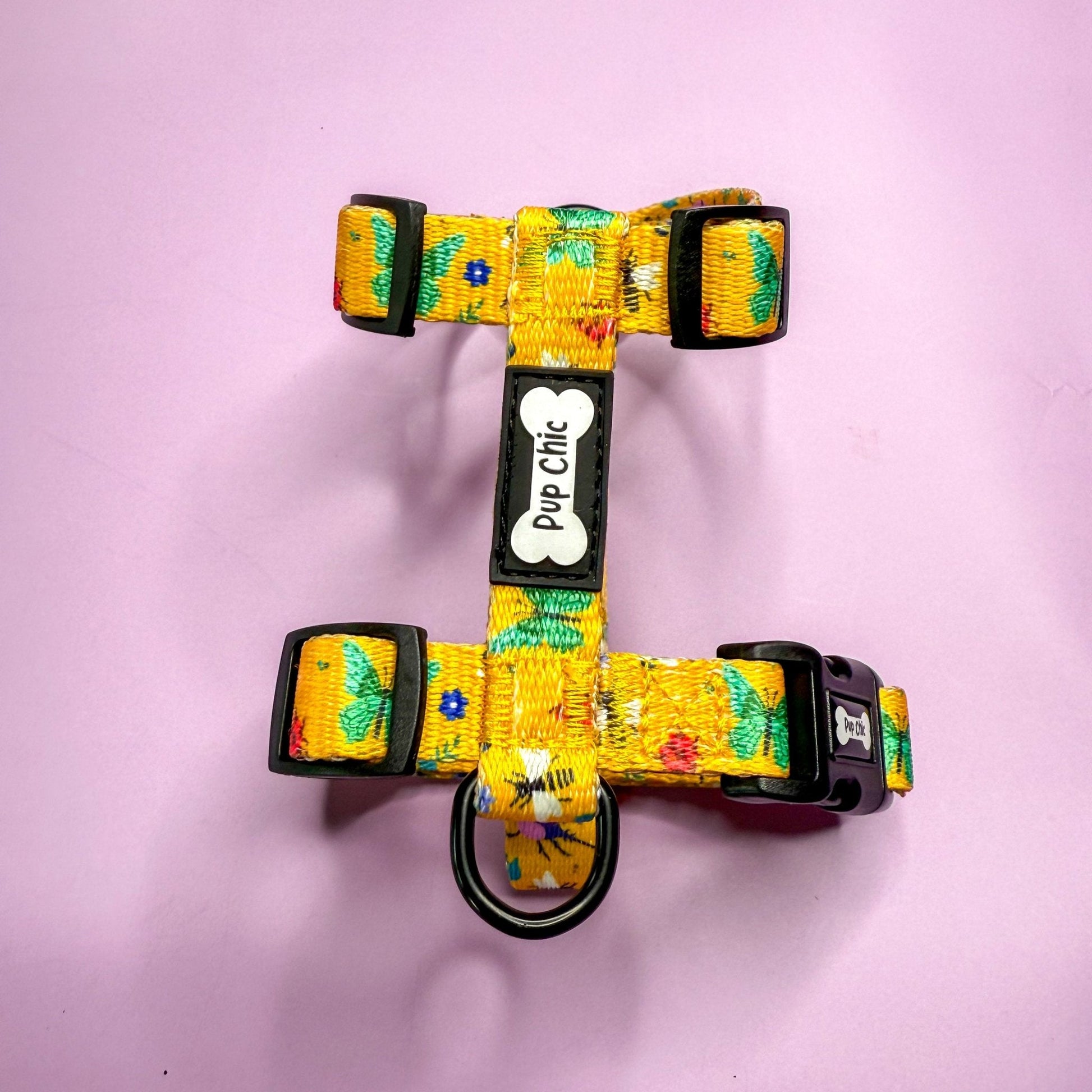 With its cheerful mustard yellow base and colourful insects, this harness adds a burst of sunshine to every walk — perfect for bright summer strolls or standing out on autumn evenings. Soft, safe, and easy to adjust, it’s the ideal first harness for small pets learning to explore.