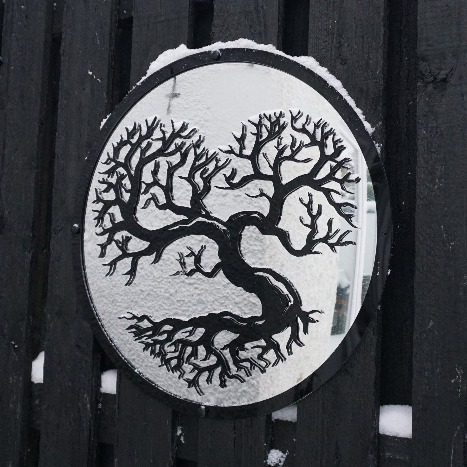 Looking to create a sense of space and reflection in your garden, patio, balcony and outside space? This round Heart Shaped Tree garden mirror makes a distinct addition to your home space, with the mirror creating reflections that help give that optical illusion of additional space and the Heart Shaped Tree image gives a flowing sense of the contempory. These lovely garden mirrors are made from acrylic so they are a resiliant, rust free, long lasting addition to your home or make a lovely gift for a new home or gardener. Great for adding depth to any outdoor or indoor space.