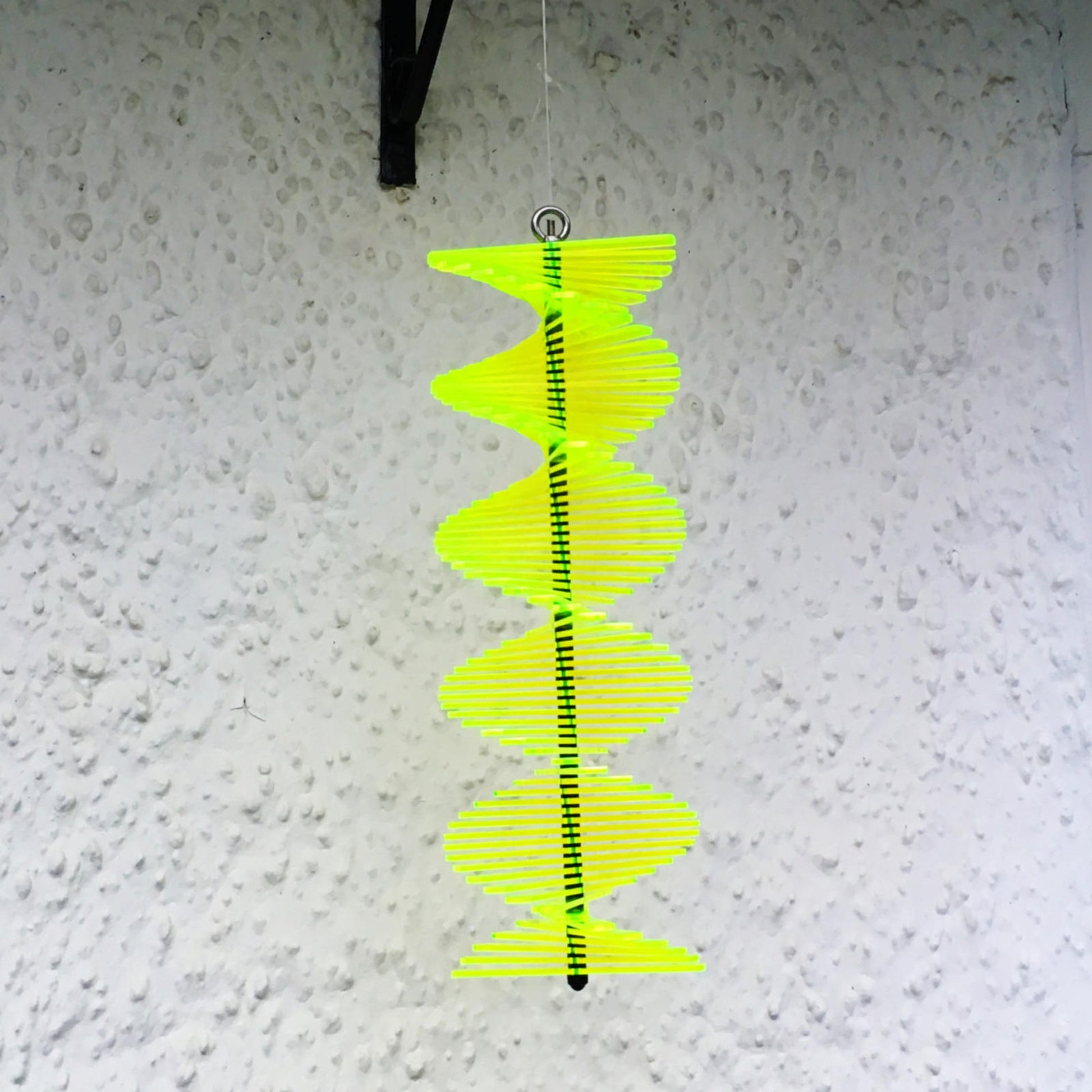 - a 150mm / 15cm / 5,91 inch diameter wind spinner, made from glowing light collectors in red, orange, yellow, green or blue