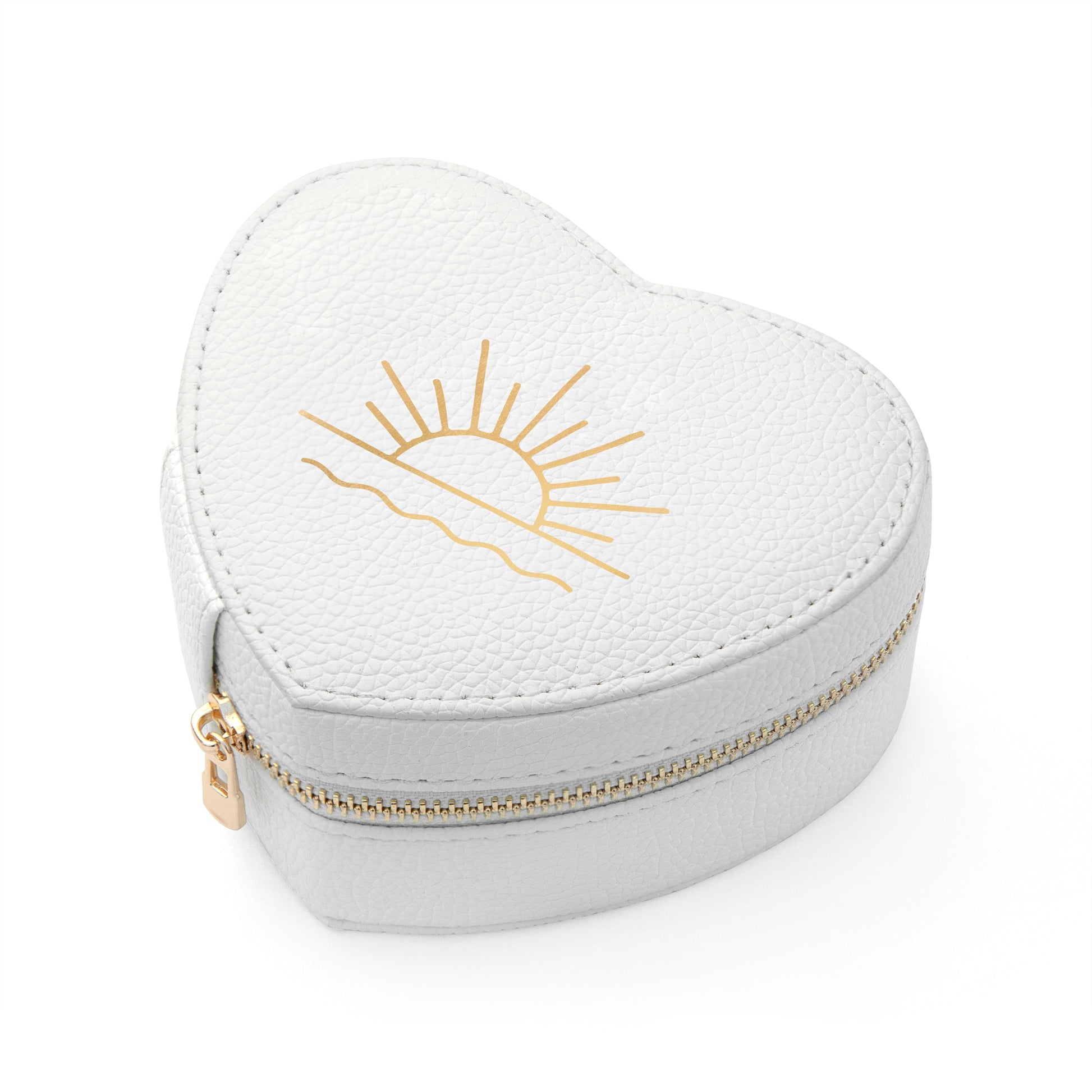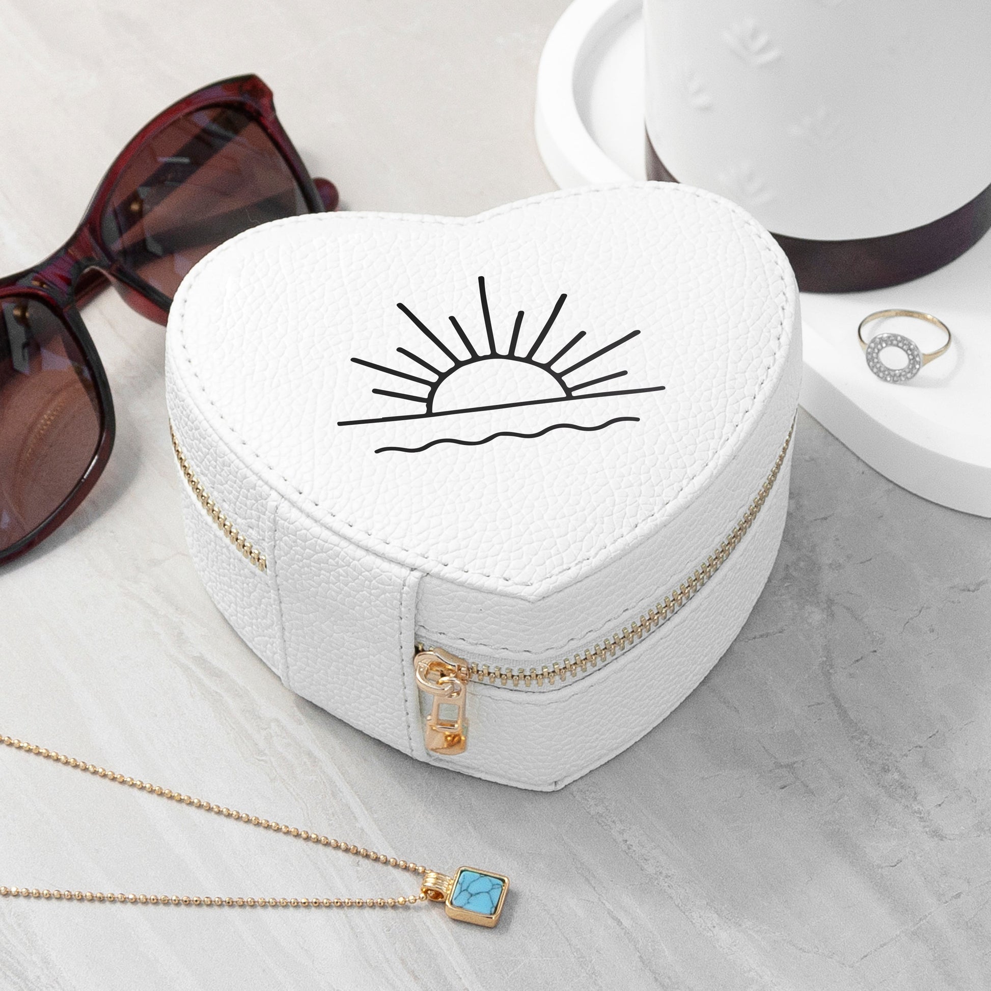 Capture the serene beauty of a setting sun with our breathtakingly beautiful Sunset White Heart Jewellery Case. With its velvet inner lining and golden zip closure, this is the perfect accessory to keep your jewellery safe whether at home or on the go.
