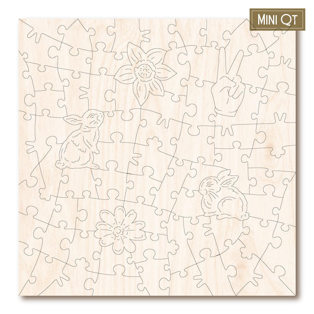 Our MINI QT puzzles are laser cut from thick, 4mm plywood and include 5 whimsies - they make a great puzzle snack!