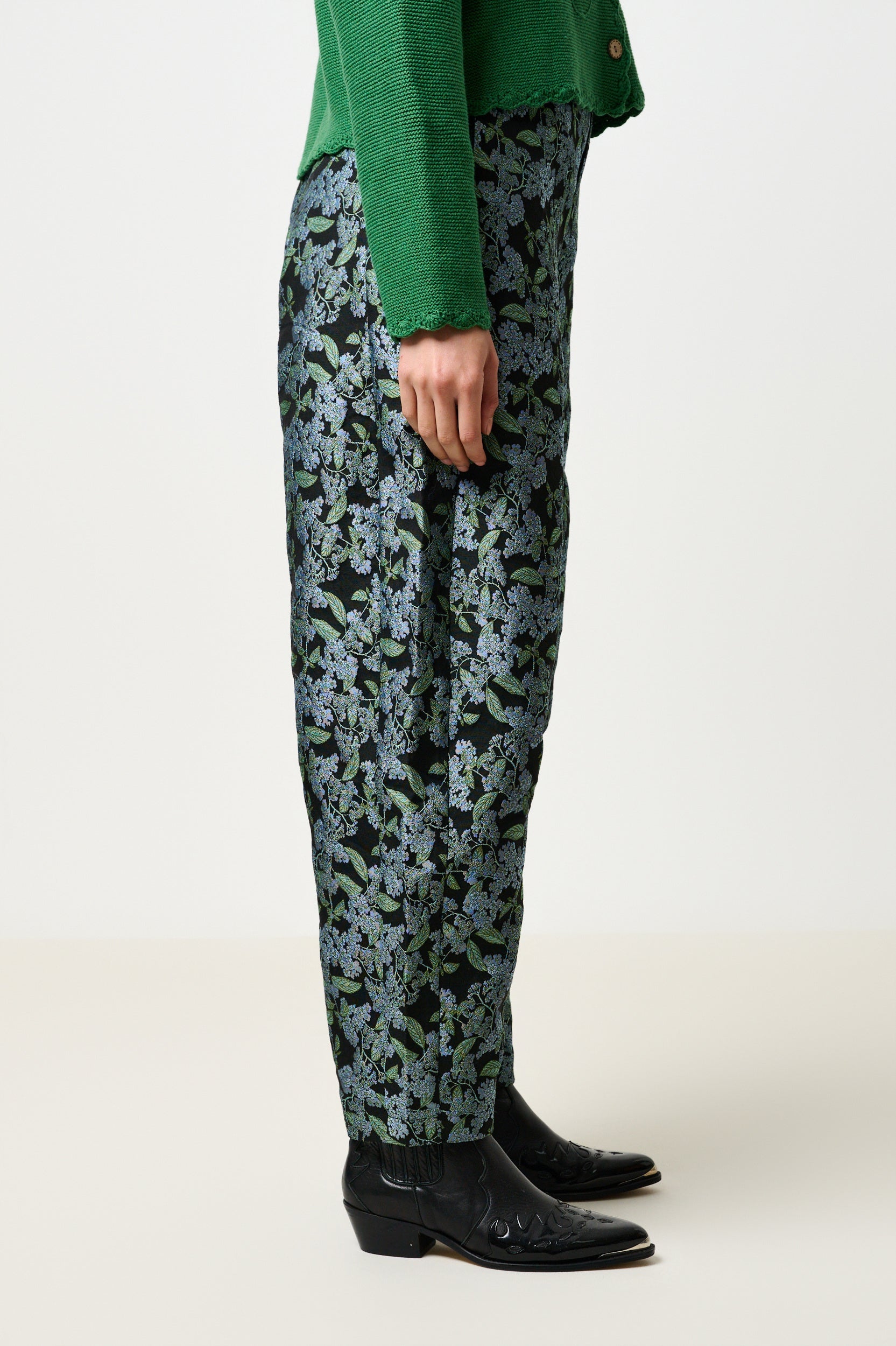 Sutton Blossom Jacquard Barrel Trouser - Black