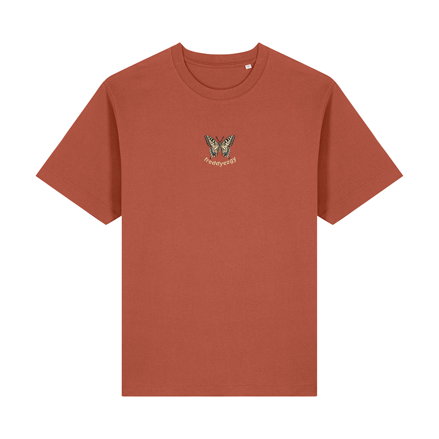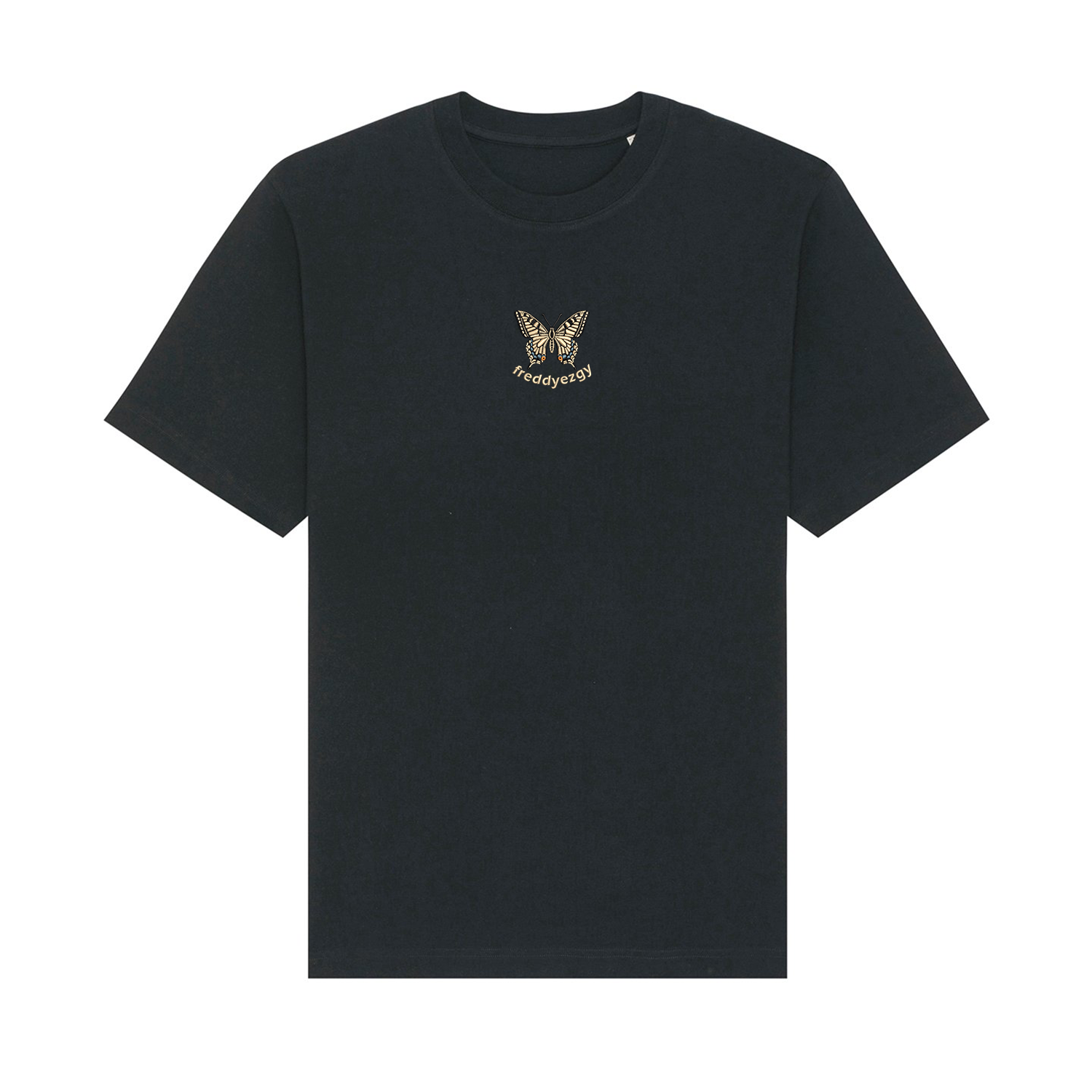With its sweeping tail and bold symmetry, the Swallowtail Butterfly is one of nature’s most recognisable forms, delicate and defined. On this tee, it’s embroidered in soft golden thread over organic cotton, creating a contrast that’s calm, not loud. Like light cutting through shadow.