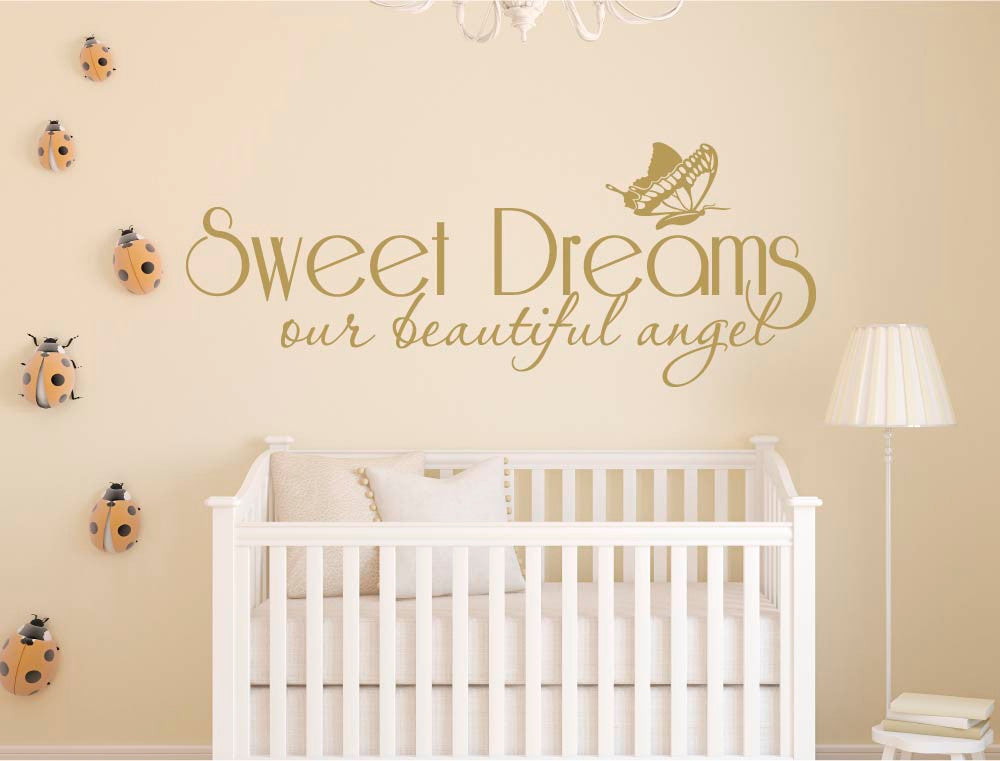 Heartfelt Nursery Quote: “Sweet Dreams My Beautiful Angel” design for a loving atmosphere