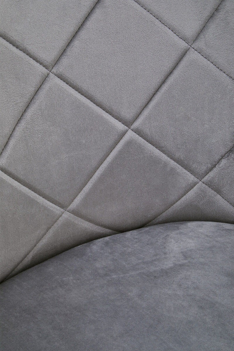 This mid-century modern dining chair offers luxe seating experience for modern and contemporary dining rooms. The padded seat and backrest features plush mink velvet upholstery with cross pattern stitched back further enhancing the aesthetics of this elegant dining chair. The Tamzin dining chair stands on splayed metal legs with reflective chrome finish countering the velvet upholstery.