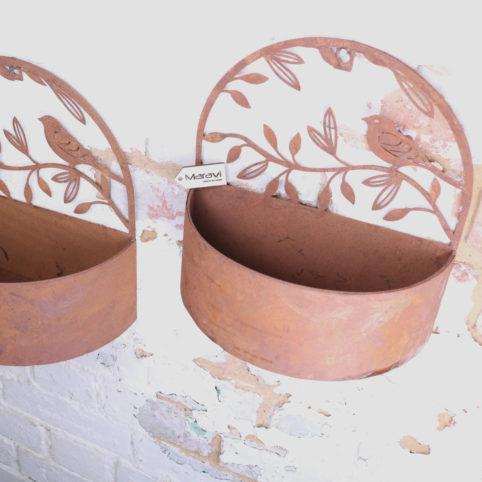 Tanu Wall Mounted Metal Planter Set Rusted Finish