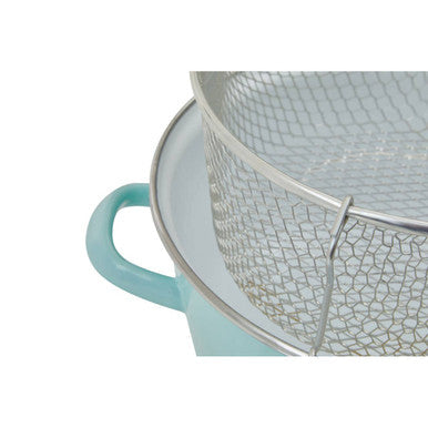 Designed for multipurpose use, this fryer supports deep frying, boiling, and simmering so you can switch from golden sides to hearty stews without changing pans. The integrated wire basket rests securely for draining and lifts smoothly thanks to side handles that stay comfortable to hold. A resilient green enamel exterior partners with a bright white interior to help you monitor colour and doneness at a glance, while the snug-fitting lid keeps splashes down as temperatures rise.